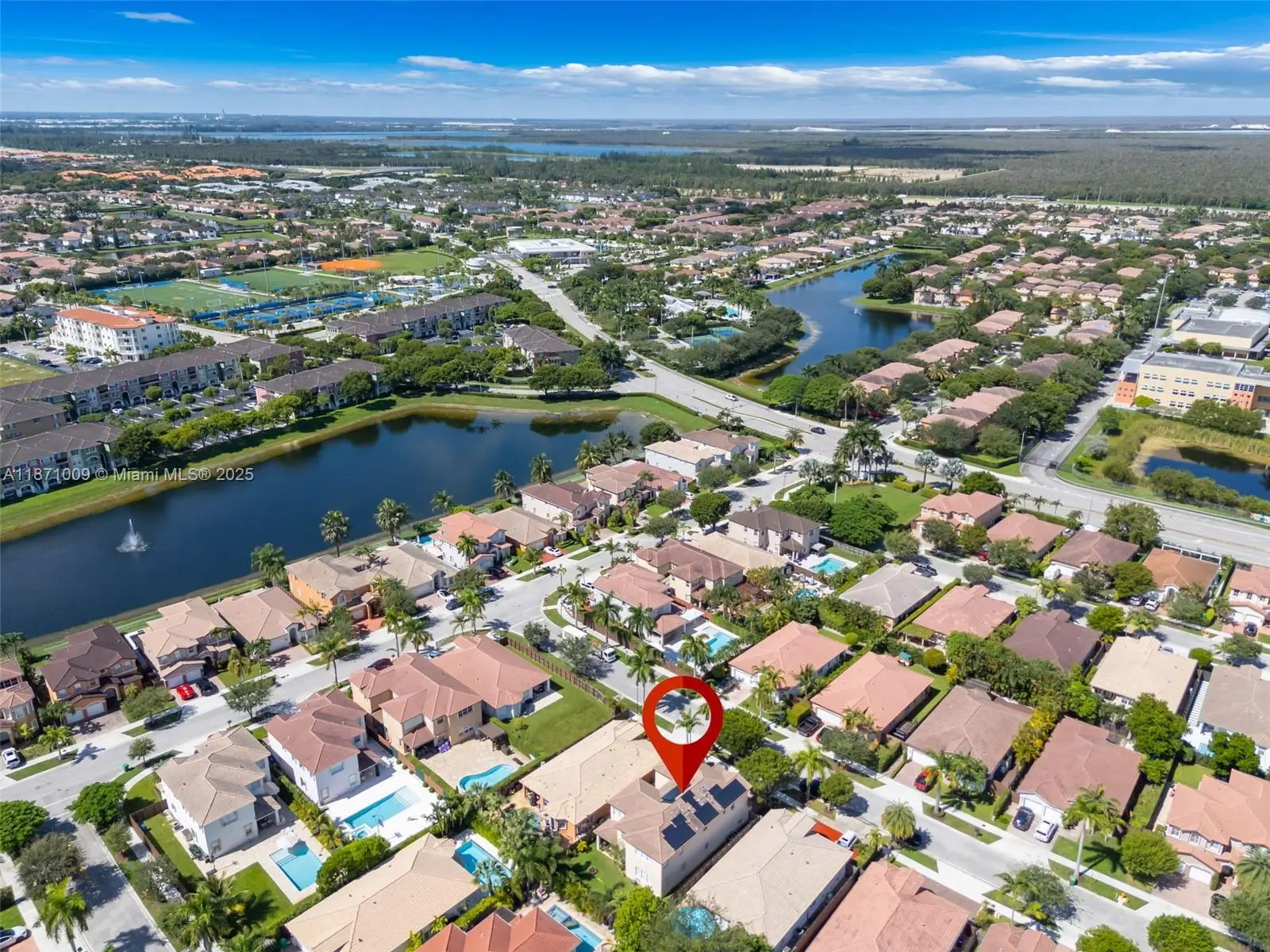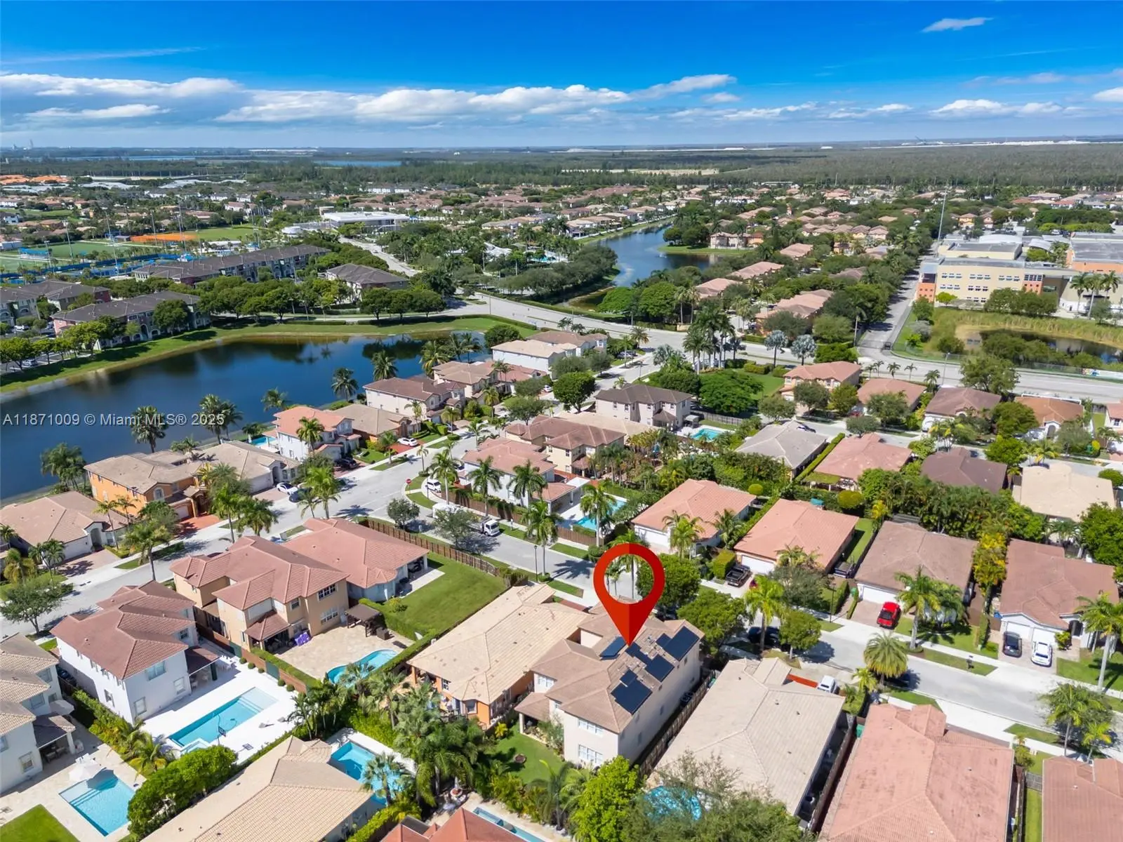 Welcome Home! This stunning 5bed/4.5bath residence in the Galapagos subdivision of Islands at Doral offers 3,650 sqft. of living space filled with natural light, soaring ceilings & a thoughtfully designed layout. The first floor includes a bedroom with en suite bath, perfect for multi-generational living. The chef’s kitchen boasts stainless steel appliances, ample cabinetry, and opens to a backyard ideal for entertaining. The expansive master suite features walk-in closets and a spa-like bath with dual sinks, separate shower & soaking tub. Substantially renovated with newer A/C units & solar panels for energy efficiency. Walking distance to the clubhouse with resort-style amenities: pool, spa, gym, business center, tennis & more . Located near major highways, MIA, FIU & Dolphin Mall.