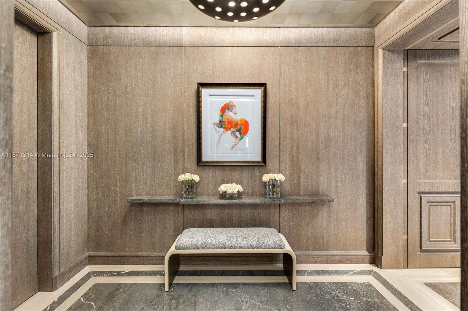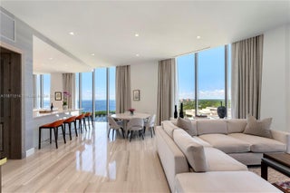 Designed by Pritzker Prize–winning architect Rem Koolhaas/OMA, One Park Grove defines luxury living. This rare 4-BD, 4.5-BA combined residence spans 5,257 SF with 2 private elevators and coveted A & B line positioning. Enjoy unobstructed sunrise-to-sunset views of the ocean and Biscayne Bay from floor-to-ceiling windows and expansive terraces. The renovated home features a principal wing with custom-made en suite closets and spa-like bath, a gourmet eat-in kitchen with Italian cabinetry, premium appliances, and water filtration, plus high-end finishes including Venetian plaster, marble/wood floors, custom office, automated shades, and laundry/utility room. Includes 2 garage spaces and an 8x19 storage room. Resort-style amenities: bayfront pool, spa, fitness center, screening room & more.