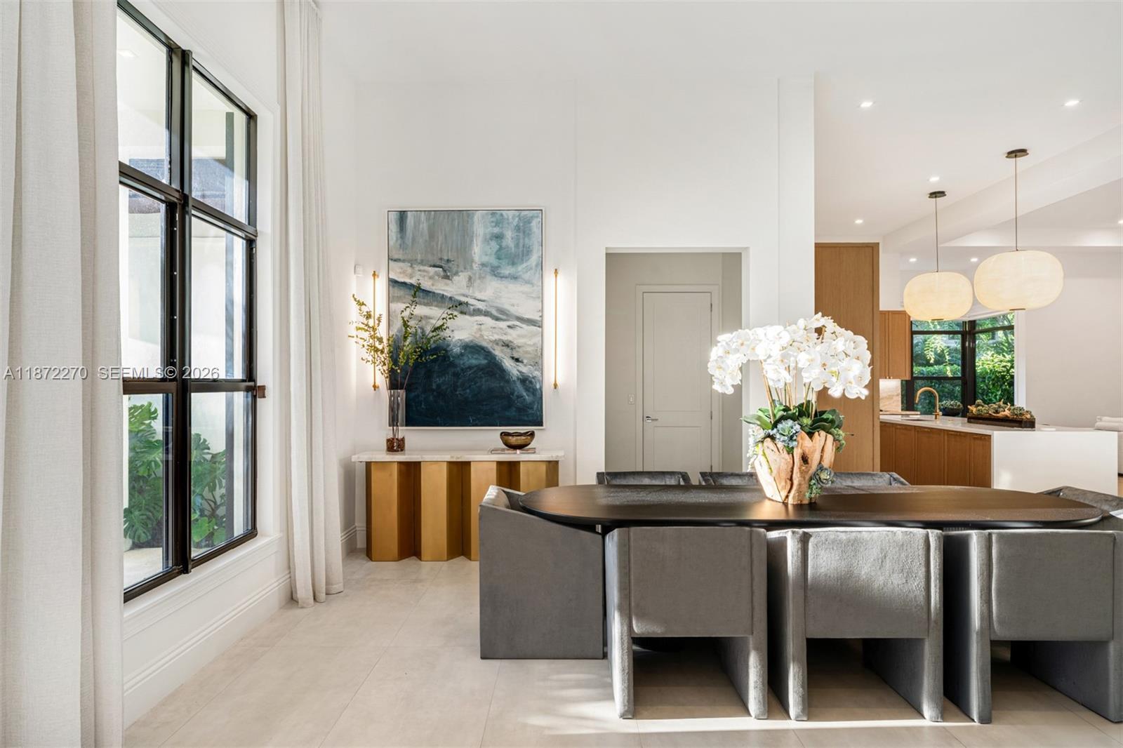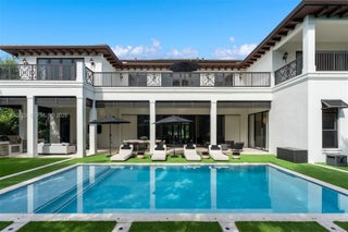 Located in the exclusive Coconut Palm Estates, this remarkable 5-bed, 5.5-bath estate is exquisitely positioned on a tranquil cul-de-sac and spans 15,546 sq ft across two graceful levels. Featuring custom designer cabinetry, boutique-style walk-in closets, and an upper-level laundry, every detail blends timeless elegance with modern ease. The gourmet kitchen with quartz countertops and walk-in pantry flows to covered terraces, a lush yard, resort-style pool, and fully equipped summer kitchen, ideal for al fresco dining. Sunlit living spaces, a cozy breakfast nook, and an inviting upstairs lounge complete this elevated sanctuary.