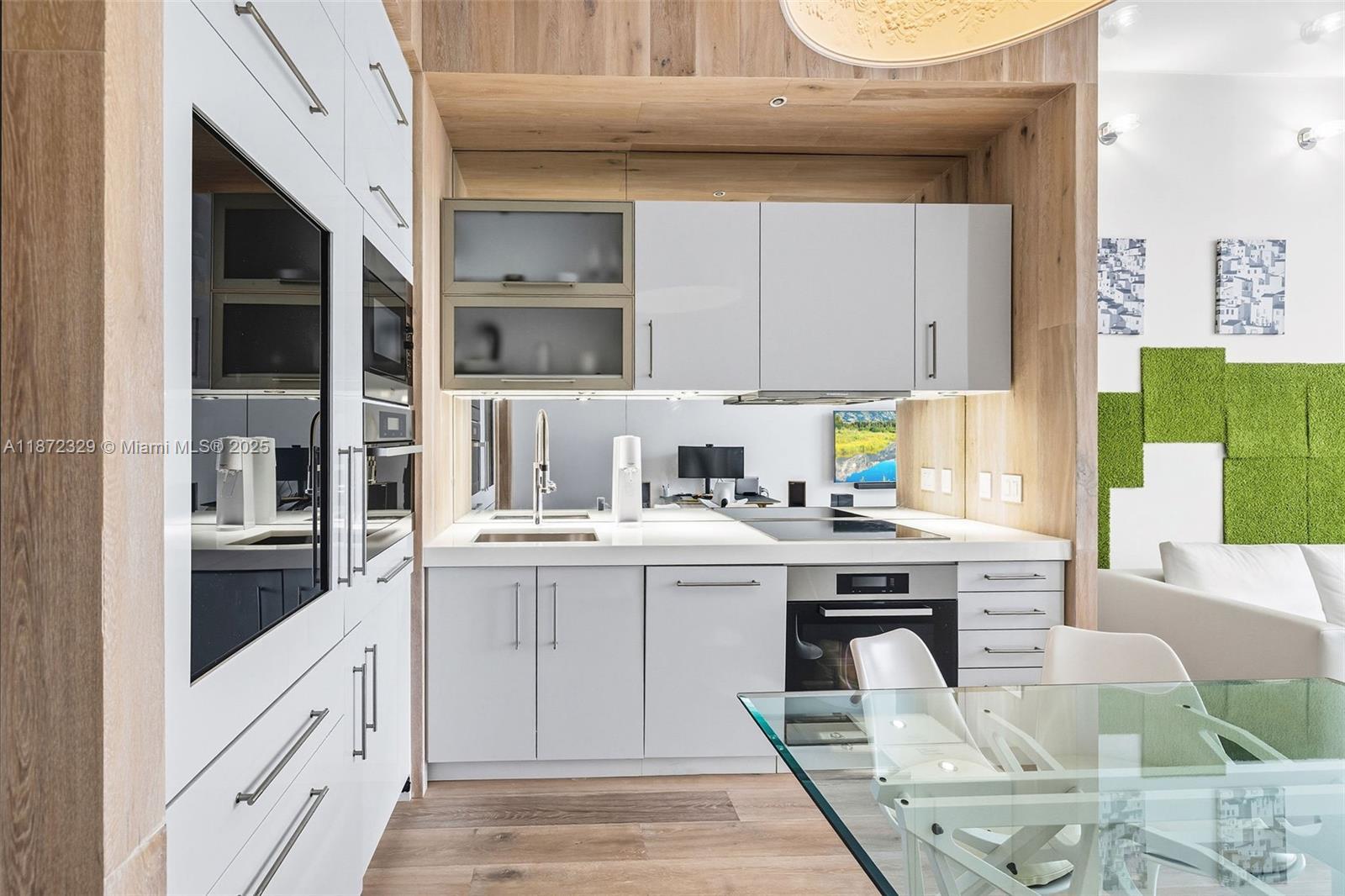 Experience modern elegance in this meticulously renovated 1-bedroom residence at 2001 Meridian. Sunlight fills the space through large windows, highlighting 11.5-foot ceilings and an open layout. The chef’s kitchen features Miele appliances, Sub-Zero and Monogram refrigerators, and custom cabinetry. Bathrooms are luxuriously appointed with Duravit, Toto, and AXOR fixtures and custom lacquer drawers. Thoughtful details continue with custom closets, shelving, a Maytag washer and dryer, ample storage, and dedicated parking. Residents enjoy a 24-hour doorman, rooftop pool and hot tub, and a fully equipped gym, all just steps from Lincoln Road, Sunset Harbour, the beach, and the Miami Beach Botanical Garden. Sophistication and convenience combine seamlessly in this exceptional home.
