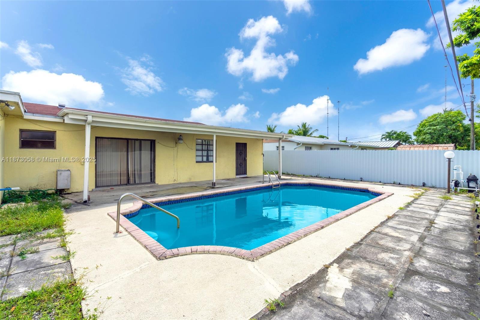Your future home awaits! This 3-bedroom, 2-bath residence offers a spacious layout filled with natural light. Step inside to a welcoming living and dining area that flows seamlessly into the kitchen and family room, creating an inviting space for gatherings. Enjoy the peace of mind with a 2019 AC and 2025 water heater. Step outside to a covered terrace overlooking the pool and patio, the ideal setting for entertaining or quiet evenings at home. Cash only. Located in Miami Gardens, close to major highways, shopping, dining, schools, and places of worship.