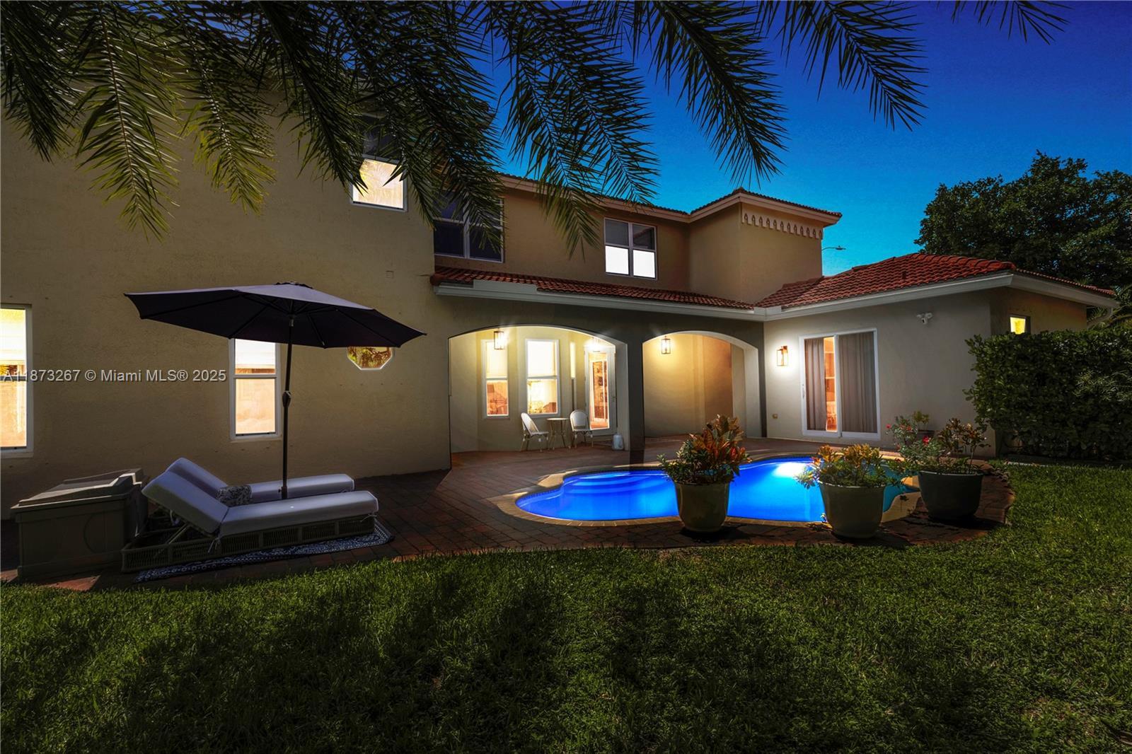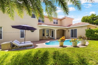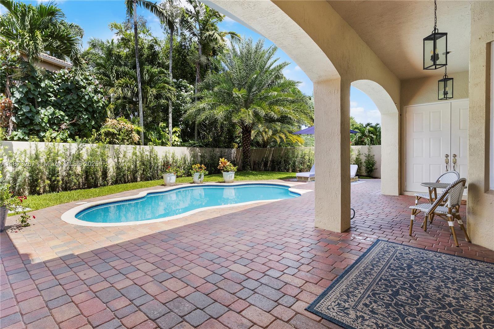 Discover South Florida living at its finest in your dream home! One of the few oversized lots in the sought-after community of Biltmore Estates at Monarch Lake in Miramar. Perfectly designed for entertaining and everyday ease and comfort.The outdoors is designed for relaxation, surrounded by lush tropical landscaping, pool area, and a large yard with a private back patio. The meticulously designed kitchen features quartz countertops, waterfall island, wine fridge and custom designed coffee station. Custom woodwork and built-ins throughout make this home a one-of-a-kind. Courtyard features private guest/in-laws quarters. The primary ensuite includes an added room perfect for office, nursery, or 5th bedroom. Impact windows and doors throughout. This home is both inviting and sophisticated.