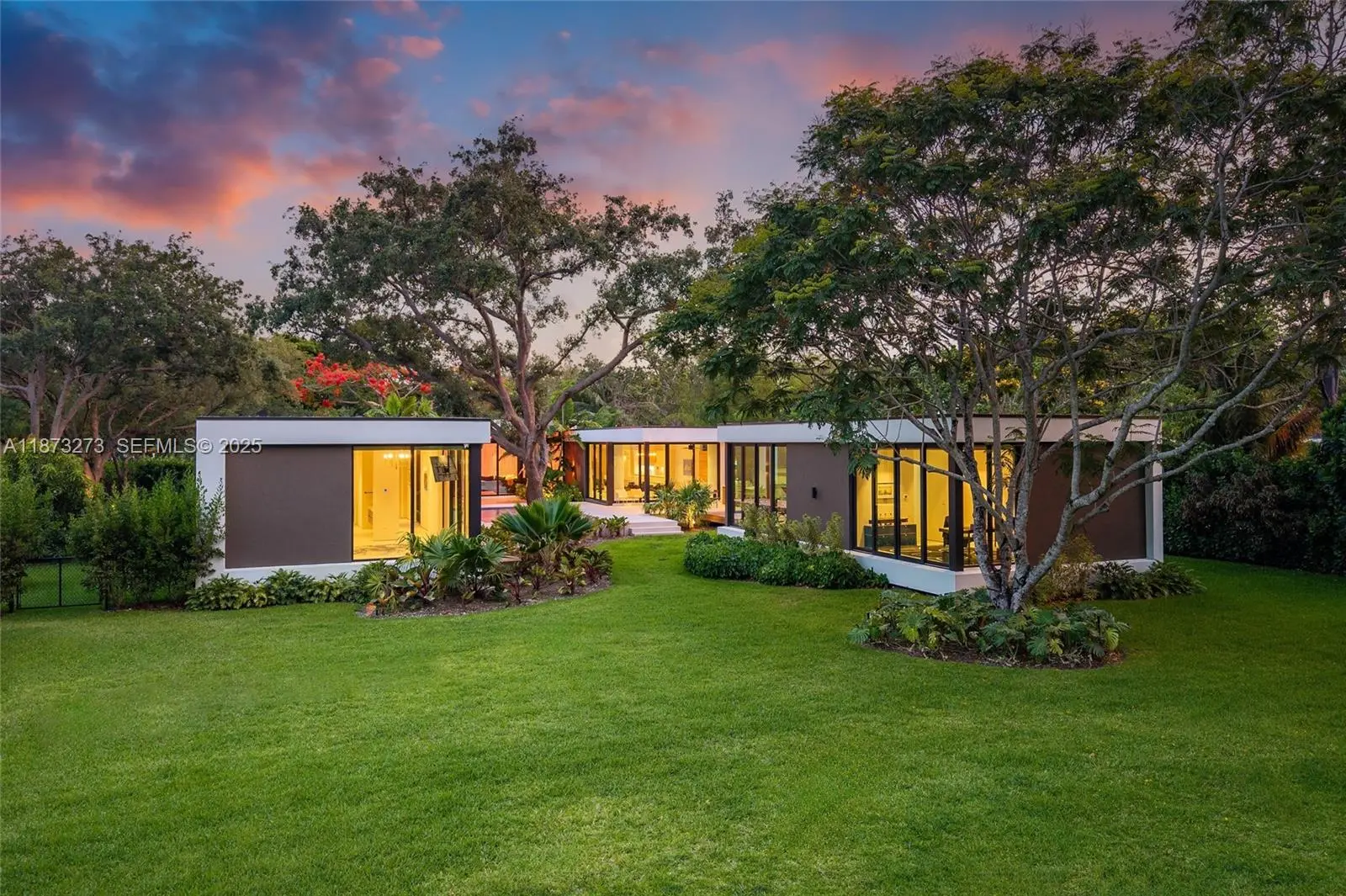 Set on a 39,639 sqft corner lot, this 2023 modern estate offers 5,745 sqft of luxury living. The main home features 6 beds, 6.5 baths, plus a detached 1 bed/1 bath suite. Designed for comfort and entertaining, enjoy a heated saltwater pool, hot tub, outdoor kitchen, putting green, and a two-car garage with EV charger. Premium finishes include Miacuccina millwork, 24x48 porcelain floors, soaring ceilings, a chef’s kitchen with Calacata Quartz, high-end appliances, & a large island. Smart features include a Control4 system, blackout shades, and more. Additional highlights: spa-style baths, walk-in pantry, laundry room, and fruit trees. Ideally located near top Pinecrest schools like Gulliver Prep, Palmetto, Beth Am, and more. Move-in ready in one of Pinecrest’s most desirable neighborhoods!