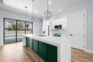 Welcome to this custom-built residence located in Cape Coral's Mariner neighborhood. Spanning 13,000 square feet, this exquisite property features 4 bedrooms, 3 bathrooms, an open-floor concept, a 4-inch Calacatta quartz island, a large master bedroom/bathroom, spacious double closets, luxury finishes, hurricane-impact windows and doors, stainless steel appliances, and a stunning outdoor patio leading to the pool area. The backyard is fully fenced and conveniently close to top-rated schools, parks, shopping, and dinning. This property combines lifestyle, location and unmatched value