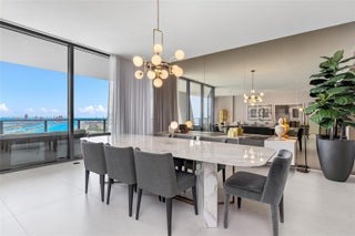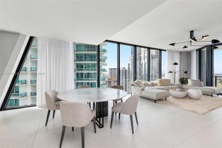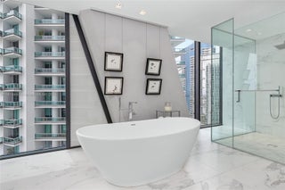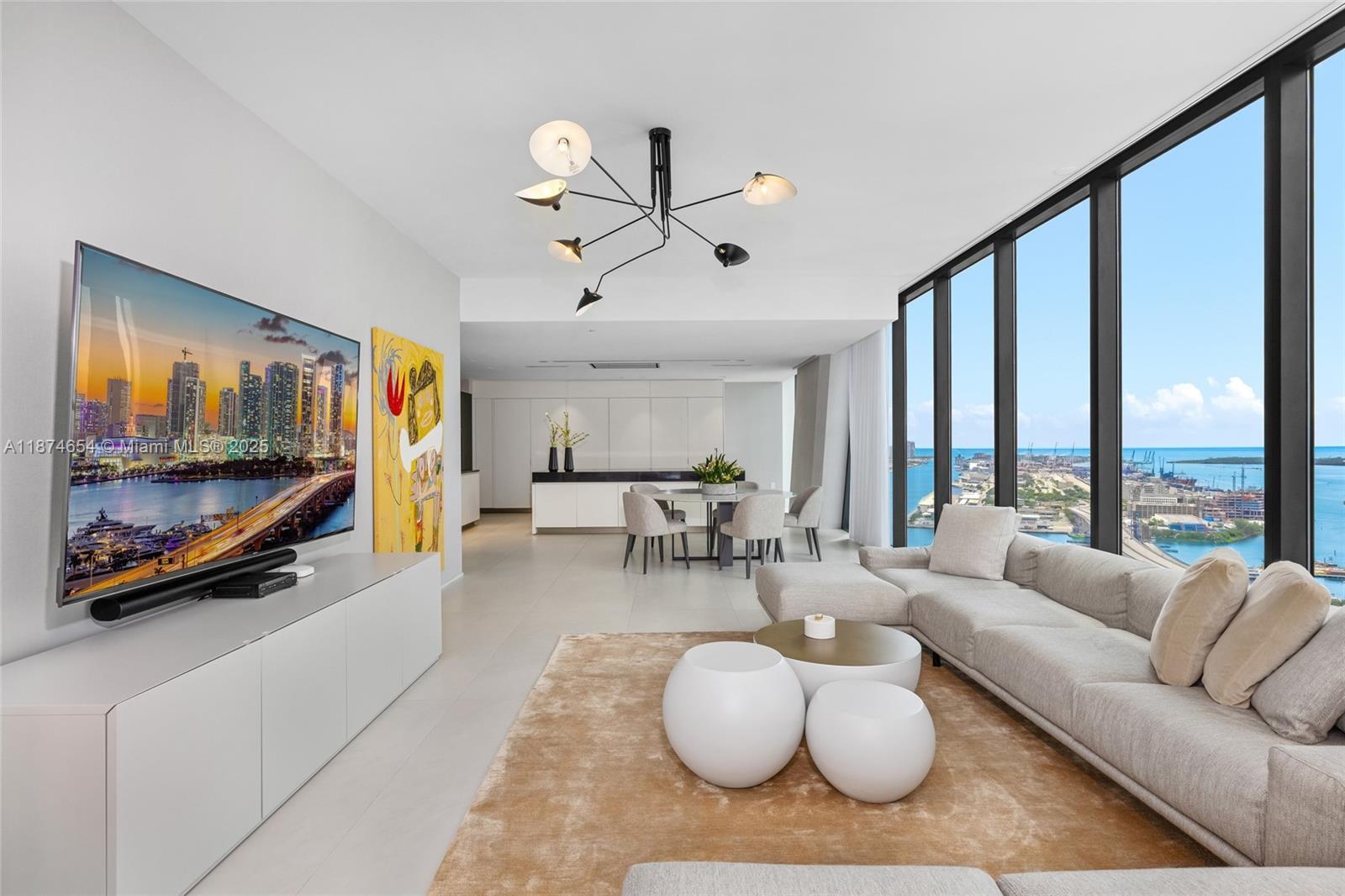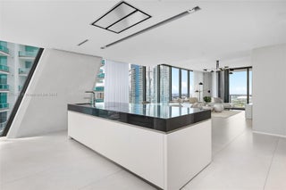 One Thousand Museum by Zaha Hadid Architects is Miami’s most iconic residential tower, offering only 84 private homes with two per floor. Inside, this 4,600 SF half-floor residence commands cinematic views that sweep from Biscayne Bay & the Port of Miami to Miami Beach & the Atlantic Ocean. A private elevator foyer opens to a flow-through layout with 4 bedrooms, 5.5 baths, floor-to-ceiling glass, expansive terraces, custom closets, smart-home technology, & a chef’s kitchen with Gaggenau & Sub-Zero appliances. Enhancements include blackout shades in bedrooms and motorized window treatments throughout. Residents enjoy five-star services & bespoke amenities including 24-hr concierge, a resort-style spa & wellness center, dual pools, & Miami’s only residential rooftop helipad.