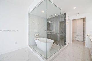 Luxury condo on the 45th floor of Aria Reserve with breathtaking panoramic views of Biscayne Bay! This never-lived-in 1 Bedroom + Den, 2-bath residence features elegant modern design, expansive living areas, and floor-to-ceiling windows that showcase stunning city and bay vistas. The unit is upgraded with glass shower enclosures, LED-lit mirrors in all bathrooms, and designer curtains in the primary bedroom and living space. Located in a premier waterfront tower, Aria Reserve offers unmatched resort-style amenities: private sports marina, spa, tennis, paddleball, squash and basketball courts, mini golf, a dog park, and two pools with water views—including a semi-Olympic pool. Experience elevated living in Miami’s most iconic high-rise.