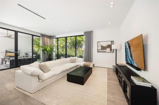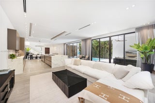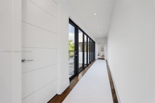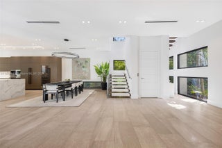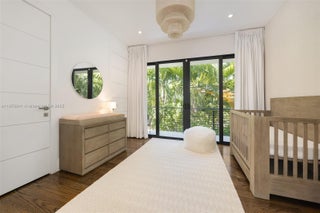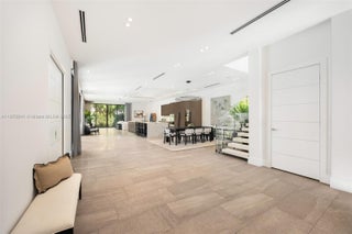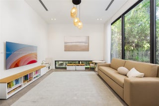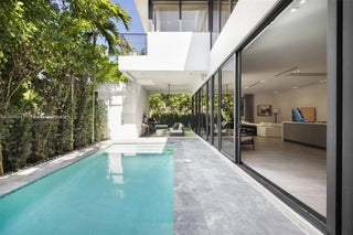 Behind a private gated entry, this tropical modern residence in North Coconut Grove blends striking design with serene surroundings. Set on a quiet, tree-canopied street near bayfront parks and marinas, the home features soaring ceilings, stone and wood floors, custom built-ins, and a chef’s kitchen with Italian cabinetry and SubZero/Wolf appliances. The primary suite offers a spa-like bath with soaking tub and glass rain shower. A floating staircase, elevator, impact glass, and 48kw generator enhance comfort and security. Outdoor living shines with a lush pool, covered terrace, and rooftop deck showcasing panoramic Grove views.