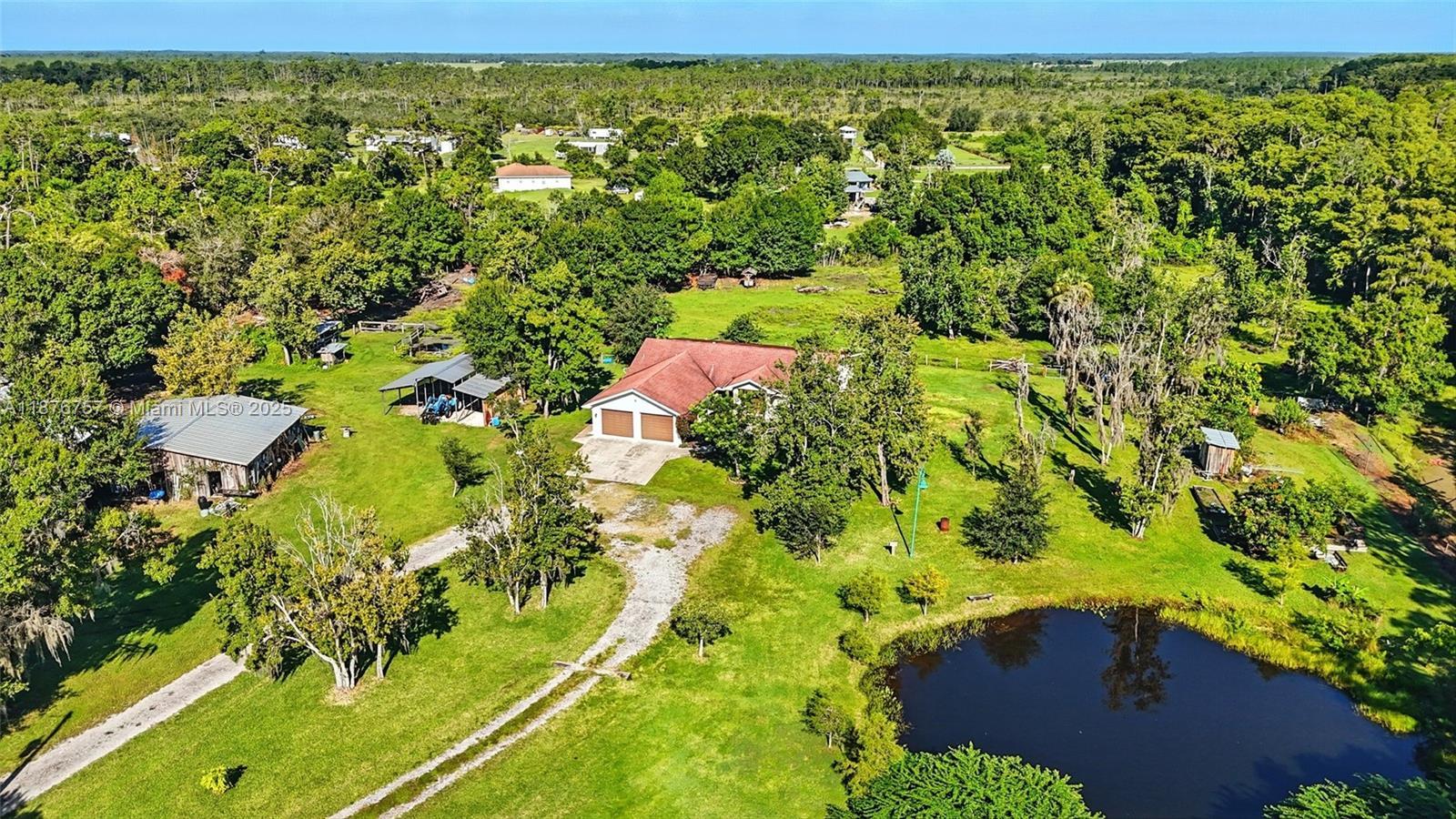ESCAPE TO PEACE AND PRIVACY, where life moves at a gentler pace. Tucked inside charming LaBelle, Florida, this single-family home offers 2,000+ square feet of inviting living space on over ten serene acres of property. With 3 bedrooms and 3 bathrooms, there’s room for everyone to spread out and savor the beauty of the surroundings. Wake up to the shimmer of an onsite pond, enjoy wooded views from the comfort of your sunroom, or soak up the sunshine from your expansive property. The property also features three barns - the first being 30x40ft with 30-amp/120-volt service, the second being 36x40ft with 50-amp/240-volt service, and the third being 13x40ft with 150-amp/240-volt service. Come see why this property is one of LaBelle’s hidden treasures.