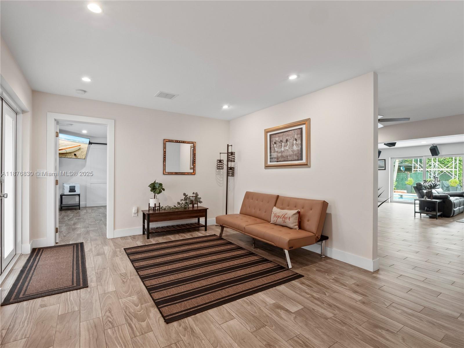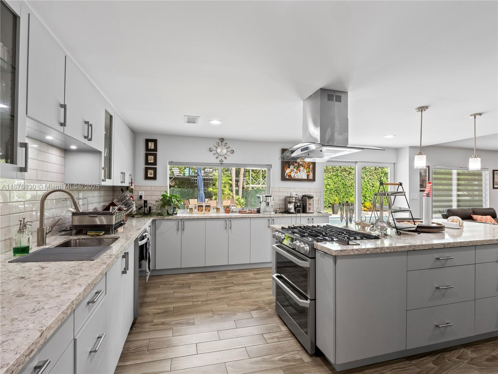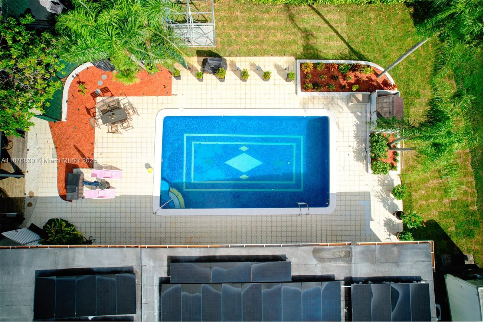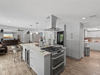 DAZZLING HOUSE!!! Located in a tranquil cul-de-sac, this home features 3 spacious bedrooms, each with its own bathroom. The master suite includes an extra room, perfect for a nursery or office. Completely renovated in 2020, the house boasts a new kitchen, bathrooms, flooring, ceilings, walls, updated plumbing, electrical, internet wiring, and A/C ducts. It is equipped with a gas stove, water heater, and clothes dryer. The open-concept layout seamlessly connects the living, dining, and kitchen areas, along with a pantry, laundry room, and office. Outdoors, enjoy a private oasis with a pool, gazebo, outdoor bathroom, gas grill kitchen, fruit trees, and ample parking. Move-in ready, this home is ideal for families and entertaining.