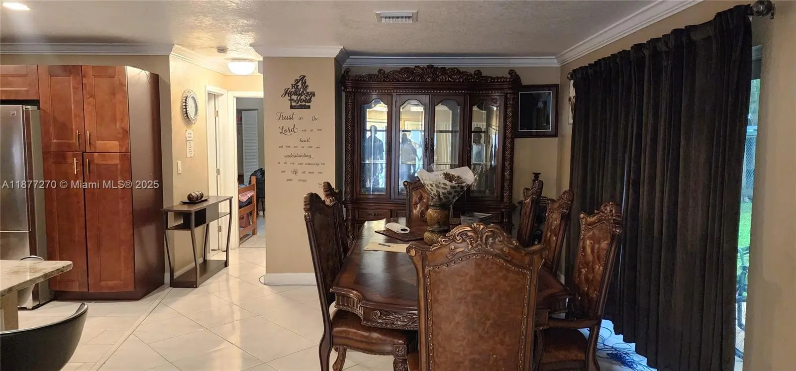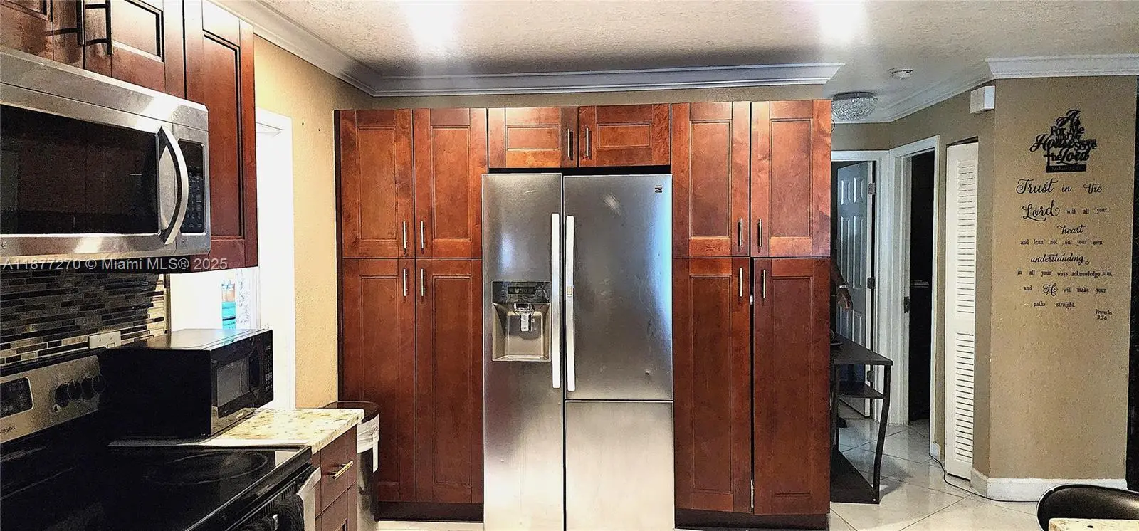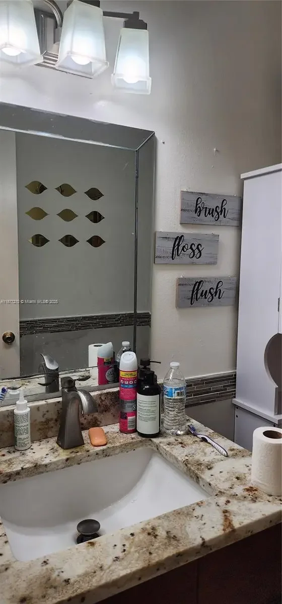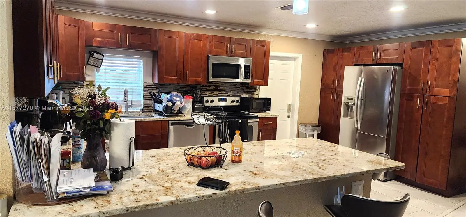 SELLER HIGHLY MOTIVATED!!!Beautiful 3/2 home with private backyard for entertainment with mango tree. Immaculate kitchen countertop update with cherry wood cabinets. A new stainless steel refrigerator less than a year old with a brushed nickel kitchen faucet. Home is equipped with water filter system and security camera all round. New impact front door and impact windows on front and side windows. Garage used as a utility and laundry room. Updated electric panel with Hurricane shutters all around. Split floor plan. Newly updated 2nd Bathroom.