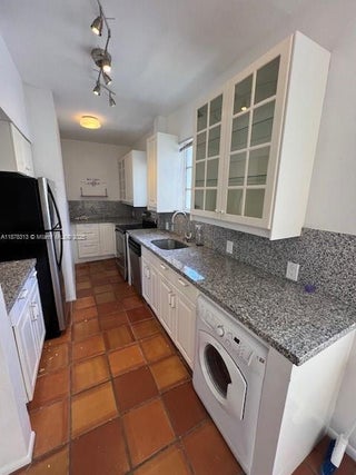 Available , Corner Spacious, charming 1BD 1BA art deco apartment. 3 blocks from the beach, Plenty of natural ight. Surrounding corner windows and vintage details such as a hand embossed fire place, carved moldings, and chair rails. Brazilian Cherry wood floor and terracotta tiles in the kitchen, Granite, washer & dryer combo unit. Building comes with a nice backyard garden area.