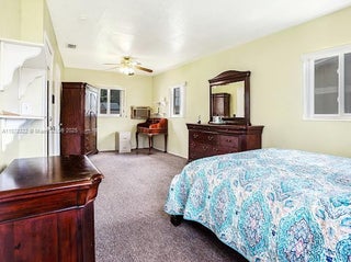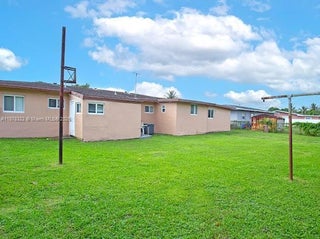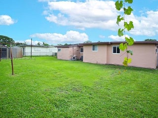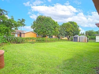Price just adjusted! This 4-bedroom, 2.5-bath split floor plan home features an open layout and a granite kitchen, with impact windows and doors for added security. A rear room with half bath provides flexible options for an in-law suite, home office, or guest quarters. The back of the home also includes a convenient laundry room. The front yard offers a covered patio ideal for outdoor entertaining, while the fully fenced backyard provides room for a pool, fruit trees, or a garden, plus two large sheds for storage. A large carport offers ample parking. Just 2 miles from Hard Rock Stadium, with easy access to highways, shopping, dining, and schools. All information is deemed reliable but not guaranteed.