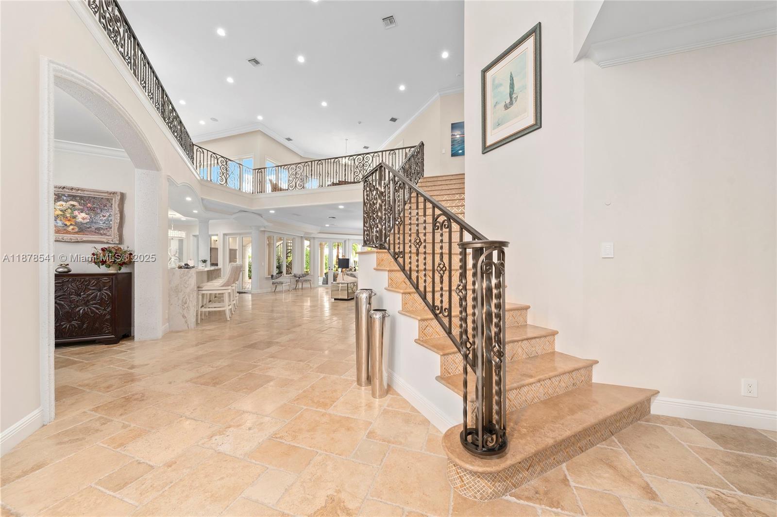A Mediterranean-inspired masterpiece, this waterfront estate marries timeless architectural grandeur with modern sophistication along 98 feet of deep-water frontage. The grand foyer with soaring ceilings opens to a sunlit great room framed by sweeping water views. The chef’s kitchen, newly updated with oversized island and professional gas range, is a true centerpiece. Two primary suites—upstairs and down—offer spa-inspired marble baths, one with cold plunge, & custom walk-in closets. Additional highlights include a mahogany office, three ice makers, dishwashers upstairs and down, an entertainment lounge with wet bar, sauna, heated saltwater pool, and new dock. A Crestron smart home system, dual laundry rooms, back staircase, full house generator, and 3-car garage complete this residence.