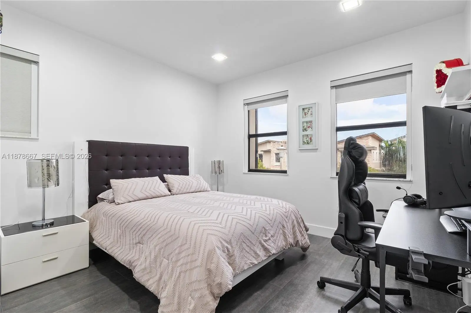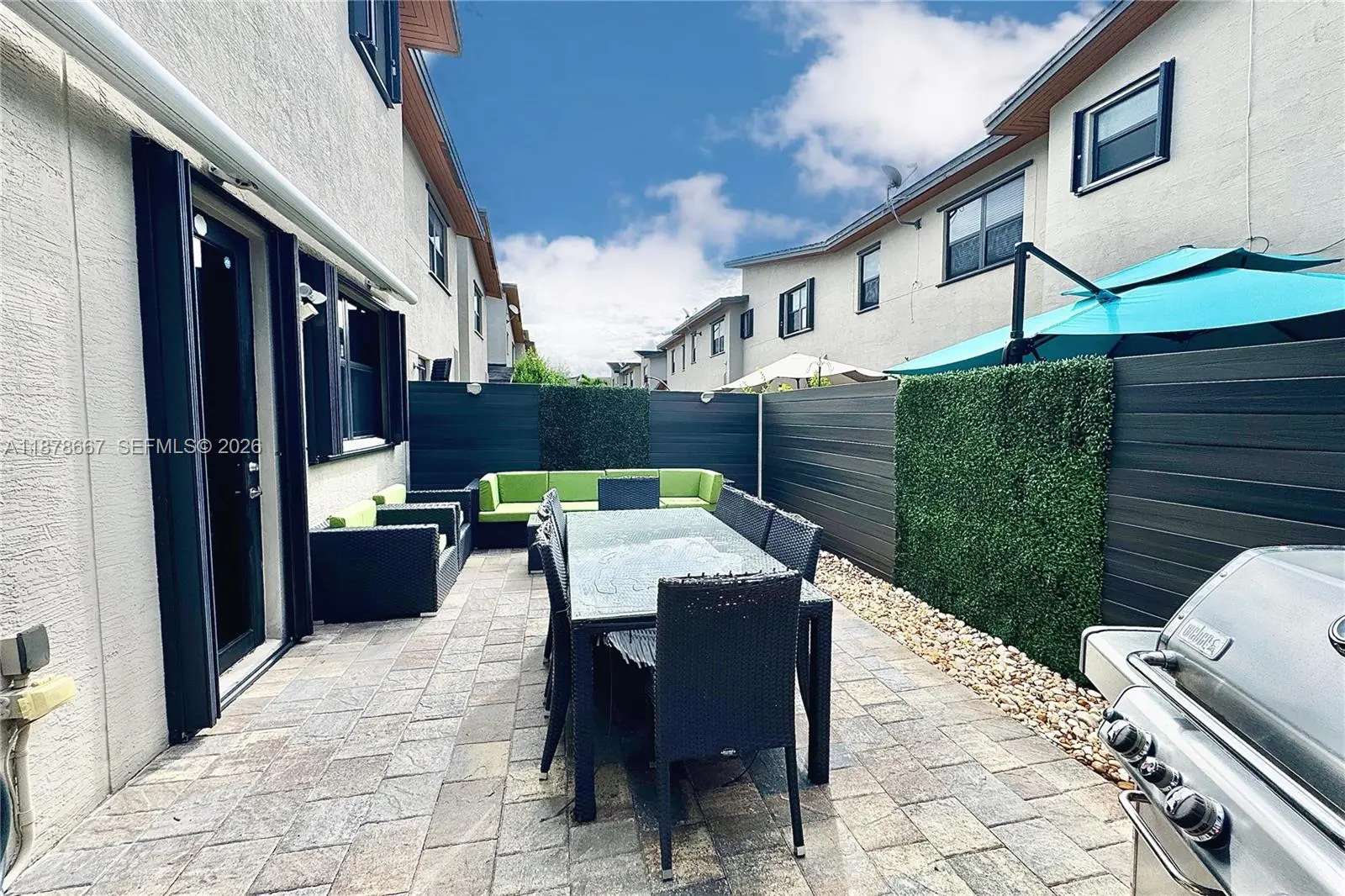 Extraordinary corner Townhouse, combines elegance, comfort and modern living, Enjoy the numerous upgrades like Hunter Douglas blinds, retractable patio roof, second refrigerator, kitchen with quartz countertops, stainless steel appliances, and custom cabinetry, as well as luxury bathrooms with designer finishes. Delight open concept living with high end flooring & contemporary lighting. Located in a sough after community offering amenities such as a beautiful Grand Central Club house, this move in ready home also provides easy access to shopping, dining and excellent schools. Making it the perfect blend of style and functionality!