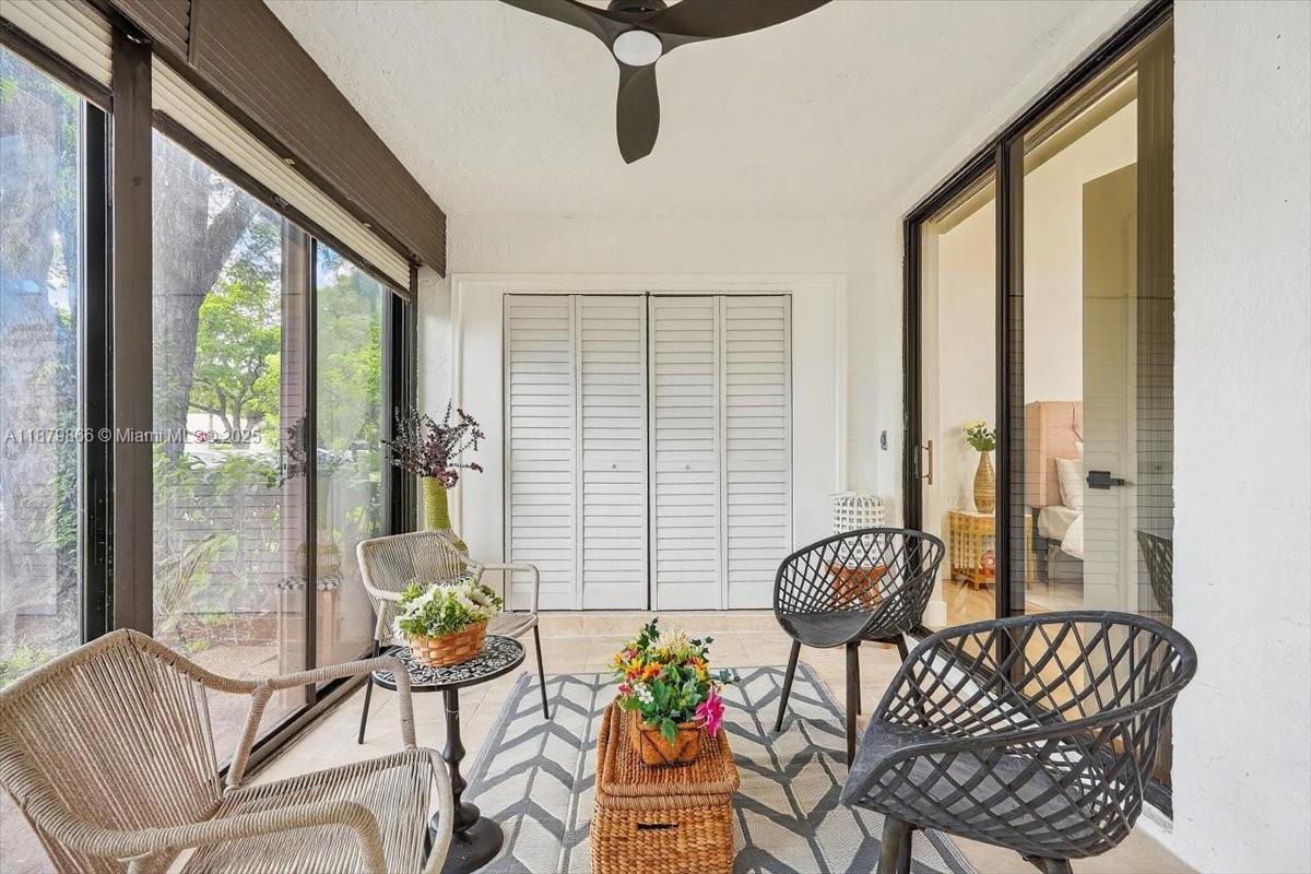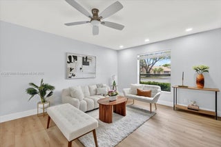 This beautifully remodeled 2-bedroom, 2-bathroom condo offers a modern and inviting living space. The open-concept living area features large windows that flood the room with natural light. The adjacent dining area includes space for a sleek table, perfect for entertaining. The gourmet kitchen boasts stainless steel appliances, white cabinetry, a striking brick backsplash, and a spacious quartz countertop with a convenient sink area. The master bathroom offers a luxurious vanity, a large round mirror, and a standing shower, while the guest bathroom features a modern sink and elegant fixtures. Both bedrooms are designed with ample natural light. Enjoy the enclosed patio, ideal for relaxation. This condo combines contemporary design with functional living, making it a perfect HOME.