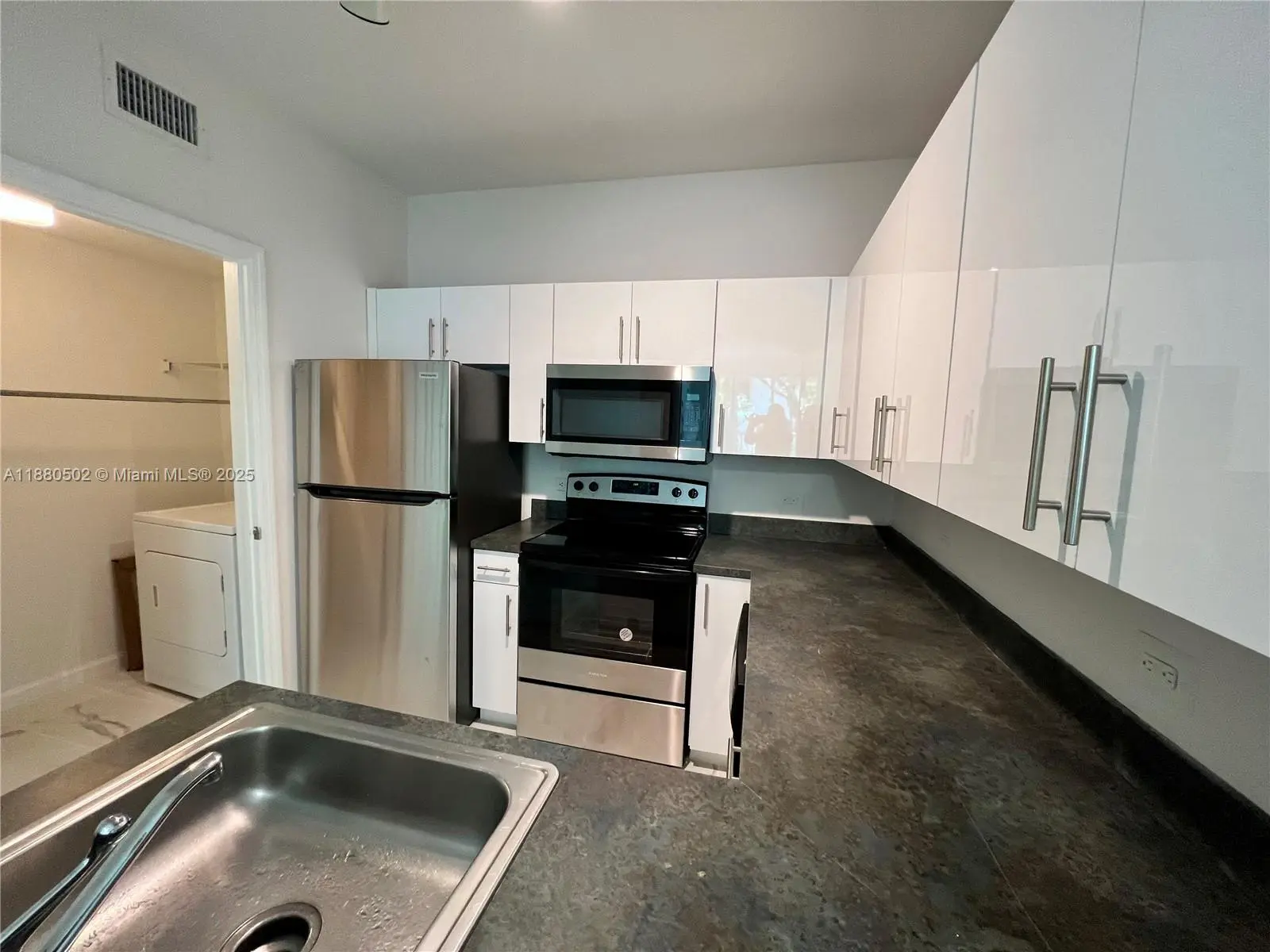 Stunning one-bedroom unit in the heart of Surfside!.This fully renovated gem features brand new appliances, sleek white & gray porcelain floors, pristine white kitchen cabinets. Enjoy a spacious master bedroom with ample closet space, an in-unit washer and dryer, and a private small balcony. The modern bathroom boasts a double vanity for added convenience. Located directly across from the ocean, the unit offers exclusive beach access, along with a volleyball court, gym, sauna, two pools, and a BBQ area with picnic tables. Internet is included in the rent, and parking is available in the same building, just steps from the unit. Waverly Surfside is ideally situated just minutes from Bal Harbour Shops, dining. Unit is currently rented until August 29th 2026!! Building has reserves and NO assessments. Call Today!