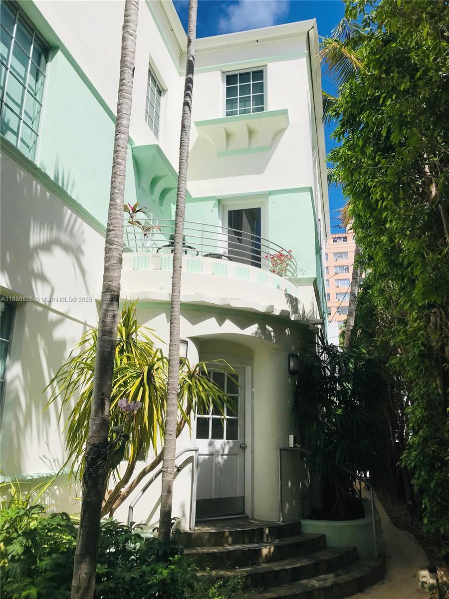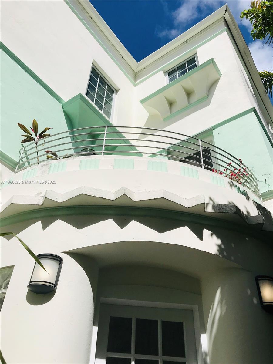 Renovated Top Floor Art Deco apartment with views all the way to South Pointe! Corner apartment has 3 Exposures with large Windows bringing in lots of light! Brand new Bathroom! Art Deco Features include original Fireplace, Archways, Wood Floors, high Ceilings and large Windows (all Hurricane impact). Modern amenities include Open kitchen with Breakfast Bar, poured concrete Counters, Gas Stove, Washer/Dryer and Central AC. Bright and airy Bedroom and Living Room have two windows each! Amazing opportunity to live in a well maintained historic 1936 Henry Hohauser designed building with a Tree lined Common Garden & Sitting area. 3 blocks to the Beach and in the middle of all South Beach has to Offer! Quick approval!