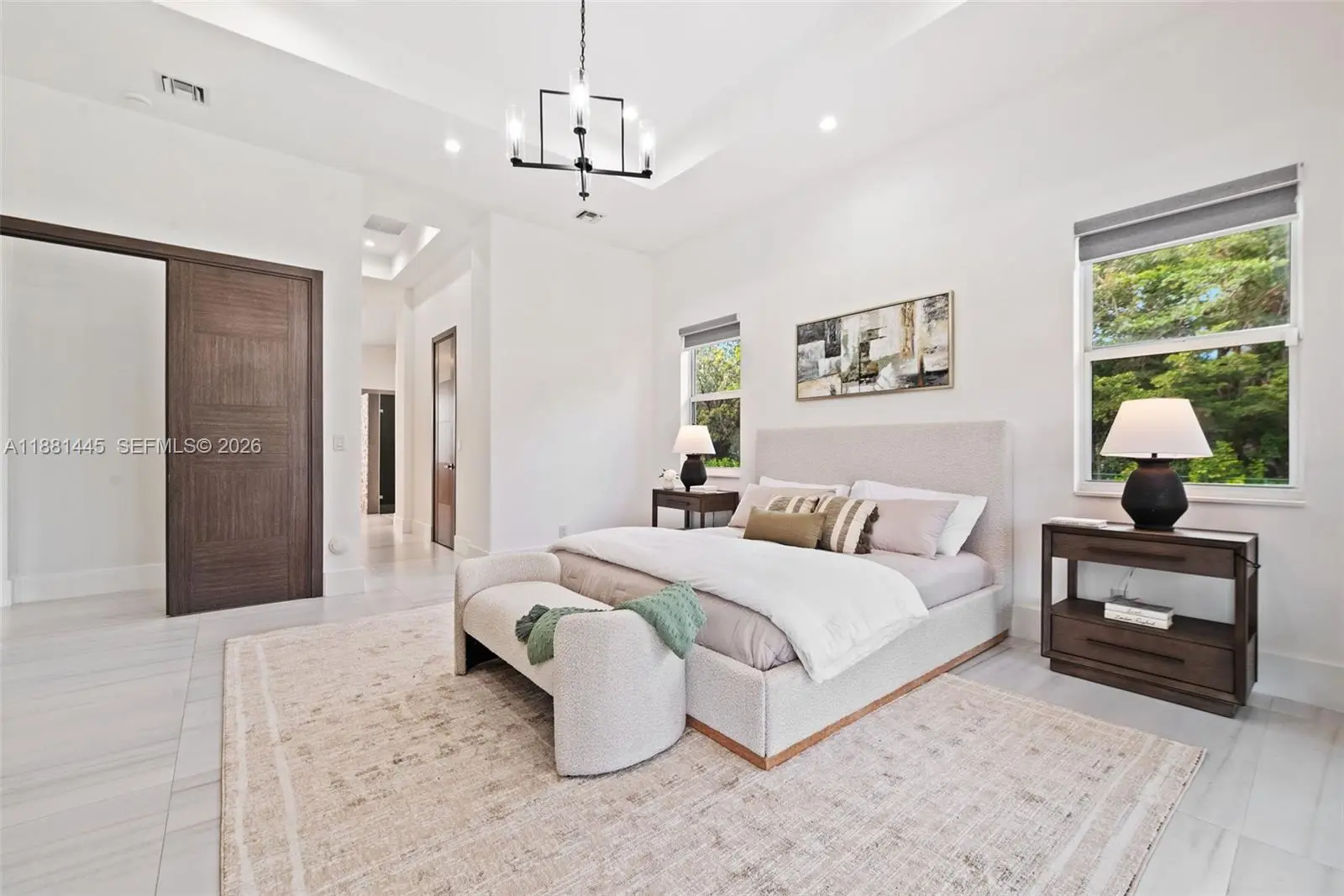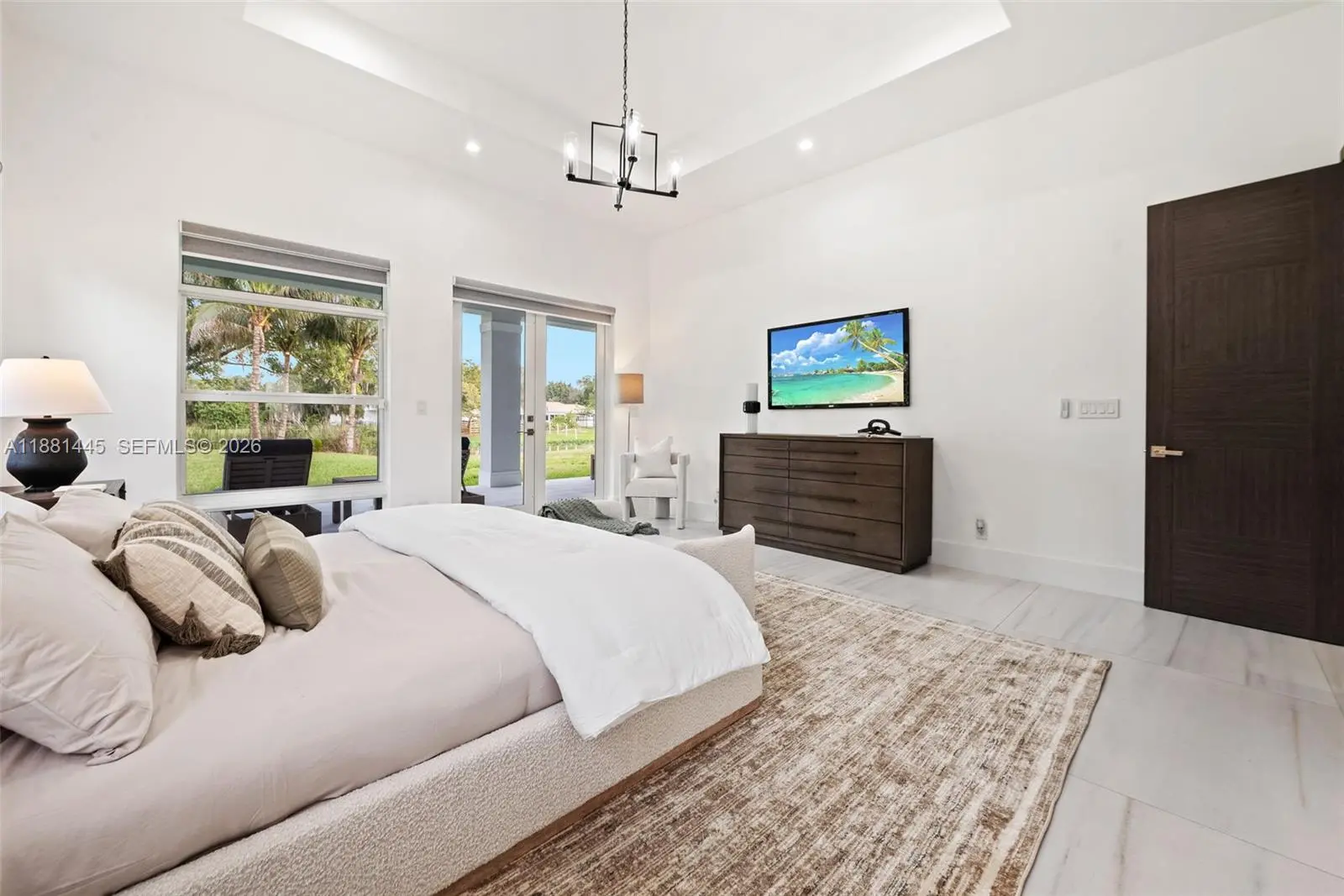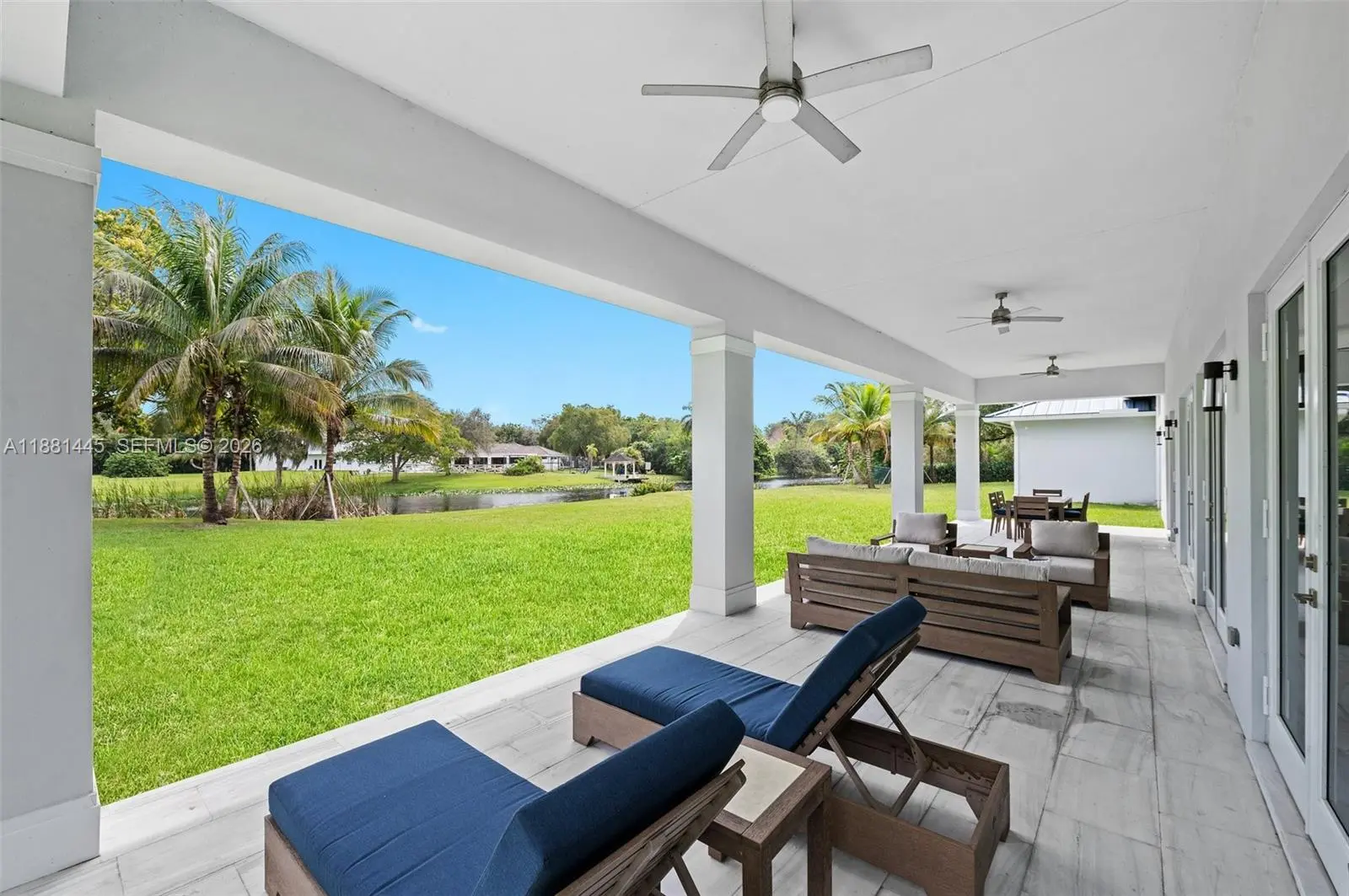 Accepting back up contracts. Now offered at $3,000,000, $100,000 below appraised value! Exquisite 2021 custom-built modern compound on 2 gated acres with private lake. Main home: 4BD/4.5BA/4,038 SF Living with grand foyer, soaring 12ft ceilings, open great room, chef’s kitchen with quartz waterfall island, 48"x48" porcelain tile, luxurious primary suite and ensuite baths and walk-in closets in every bedroom. Detached 1BD/1BA/660 SF guest house with living, kitchenette + flex space (office/gym/storage). Spacious covered outdoor living, marble patio and driveway, and expansive grounds ideal for pool, courts, or equestrian use. Oversized garage with epoxy floors, custom cabinetry, workshop & lift space. Smart, efficient & secure: impact windows/doors, foam-insulated concrete, dual AC, metal roof w/solar vents, 7-camera security, solar gate. Boat/RV Parking. Seller offering a $40,000 Pool & Outdoor Lifestyle Credit. HOA $200/yr, no restrictions. Design Services Included for 4 rooms! Some photos virtually staged.