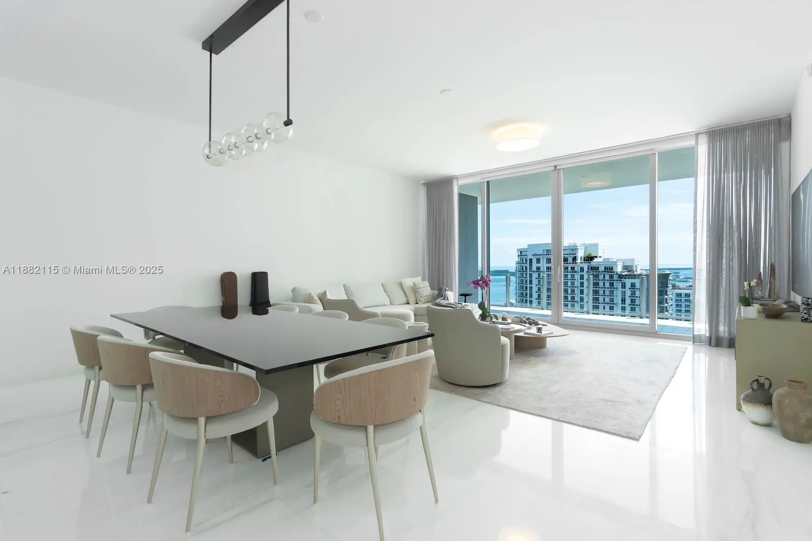 At Aston Martin Residences, Unit 3503 delivers the perfect blend of prestige and lifestyle. This 3-bedroom plus den, 4.5-bath residence includes a family room and staff quarters, all finished with white marble floors, Artefacto furnishings, and Ornare closets. Expansive windows capture stunning views of the Miami River and Brickell Key, while the chef’s kitchen with top-tier appliances enhances its appeal. With 42,000 sq ft of amenities—sky-high pool, luxury spa, fitness center, private theaters—this building is a destination in itself. Located in Downtown Miami, it offers unbeatable value for clients seeking luxury and exclusivity.