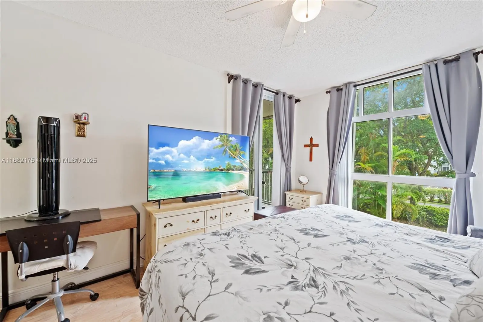 Beautifully maintained 3-bedroom, 2-bathroom corner unit located in the highly desirable and secure community of Doral House #2. This spacious residence offers 1,230 sq. ft. of living space and an extraordinary terrace, perfect for entertaining. The master bedroom includes a large en-suite bathroom and two closets, while the additional bedrooms are conveniently situated on the opposite side, ensuring privacy. Recent upgrades include brand-new appliances, an AC unit replaced in October 2024, an in-unit washer and dryer, and a tankless water heater.The community offers a clubhouse with pool and gym, bike storage, and access to two additional pools nearby.The building has been recently renovated with a new roof, fresh exterior paint, modern elevators, and upgraded security cameras throughout.