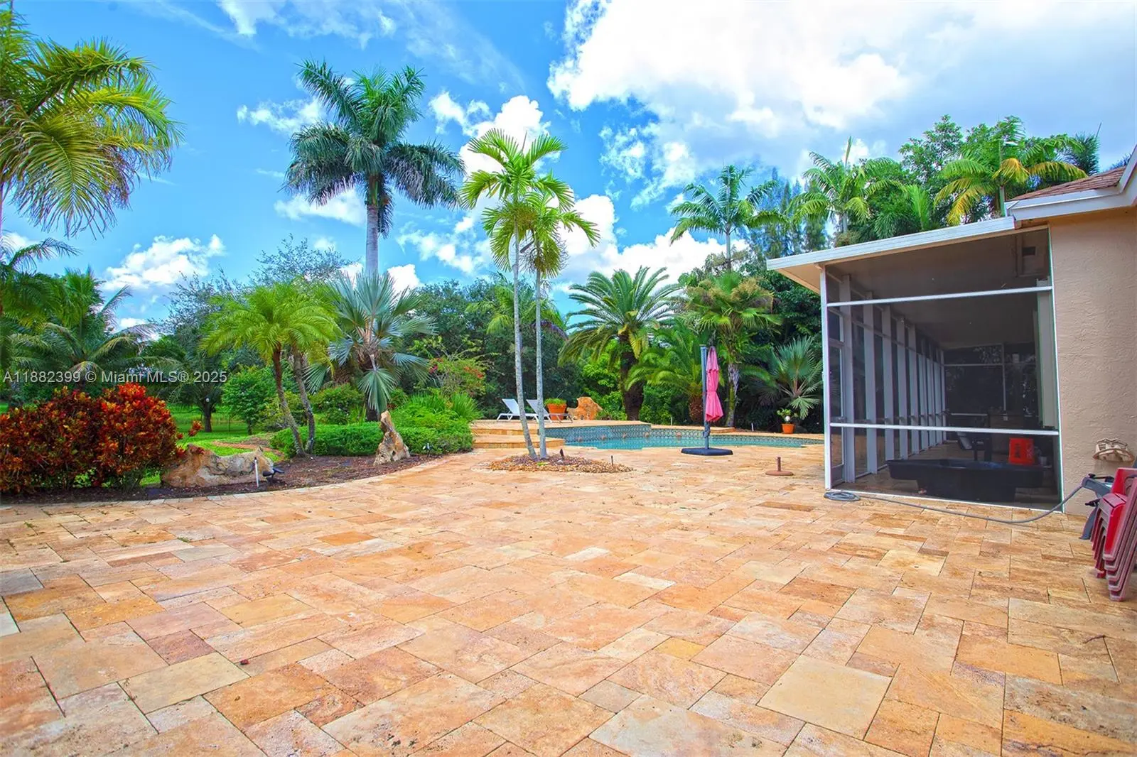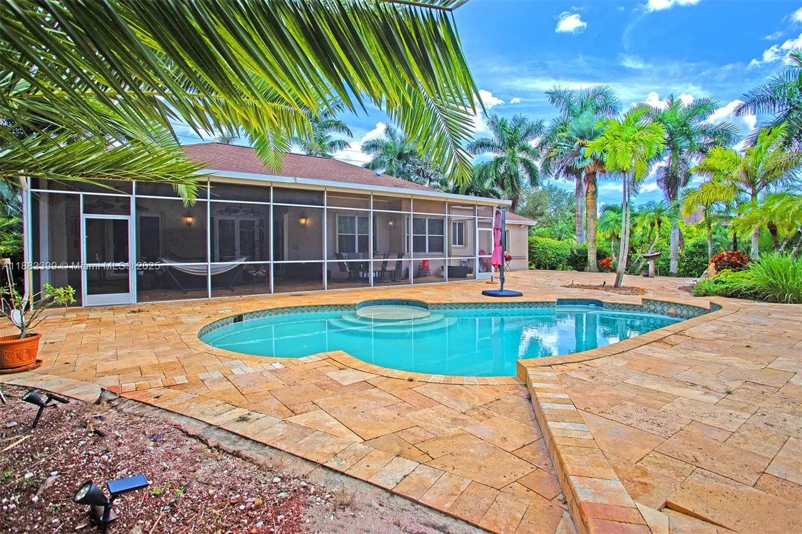 Spectacular one story 4 bedrooms 2 1/2 baths, bright and spacious home sitting on a huge 44,225 sq ft lot, with canal, and a large swimming pool offering the vibe of living in a true natural oasis, surrounded by matured landscape. The primary bedroom, living rooms, and kitchen open directly to this unique setting, a covered screened porch providing privacy, and an exceptional atmosphere. The open concept layout features formal living and dining rooms, a remodeled and modern eat in kitchen. Large driveway, 3 Car Garage, and a separate driveway for boats and trailers. Excellent location in a great neighborhood, close to US 27, I-75, Sawgrass Expressway, and I-595. Make it yours today!