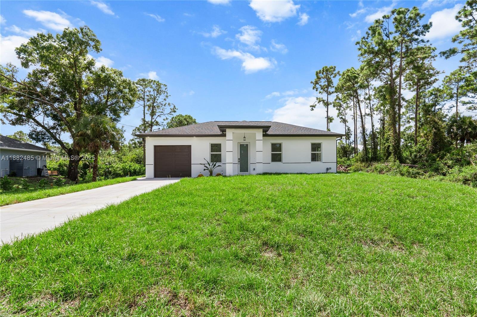 Come and visit this new construction in Lehigh Acres. Beautiful brand new home featuring impact windows and doors, elegant glass shower doors, modern ceiling fans with lights, and high ceiling that create a spacious and. bright atmosphere. The kitchen boats quartz countertops, sleek cabinetry, and a stylish open layout perfect for entertaining family and friends. Close to 82 ave. 1.1 from Aldi. Seller also owns adjacent parcels that may be available for separate purchase. Don't miss the opportunity to expand your investment. Buyer or agent should verify availability and terms directly with the seller. Seller is offering $10,000 contribution towards closing costs. Don't miss this opportunity to own a move in ready new construction in a growing community.