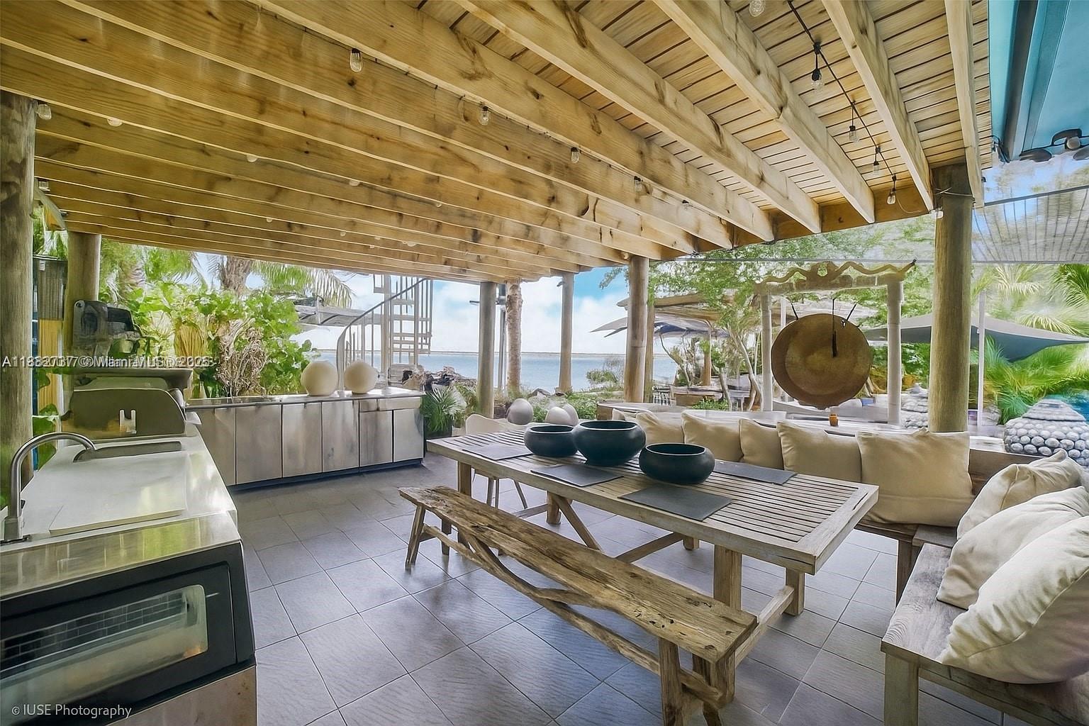 One-of-a-kind waterfront masterpiece! This unique home sits on a cul-de-sac on Normandy Shores exclusive gated community, w/ Normandy Shores Golf Club, Tennis, Basketball Courts, and Parks. Nestled on the Island's Terrace, shares w/only 6 residences breathtaking open bay views and sunsets. Built in 2015, this 3,442 SQ FT eccentric home features 4 bed/4 bath, open living and dining, state-of-the-art kitchen, and more. The home's Zen vibe begins as you step through a bamboo garden, 30 ft interior waterfall, and end at the open bay sanctuary. The backyard landscaping, shimmering pool, outdoor kitchen, and terraces make this home magic. Bath in the outdoor tub, watch movies at the two-story Tiki Hut, and enjoy the dock at sunset. Boat and Jet Ski lifts and davit. Plans for a two-car garage.