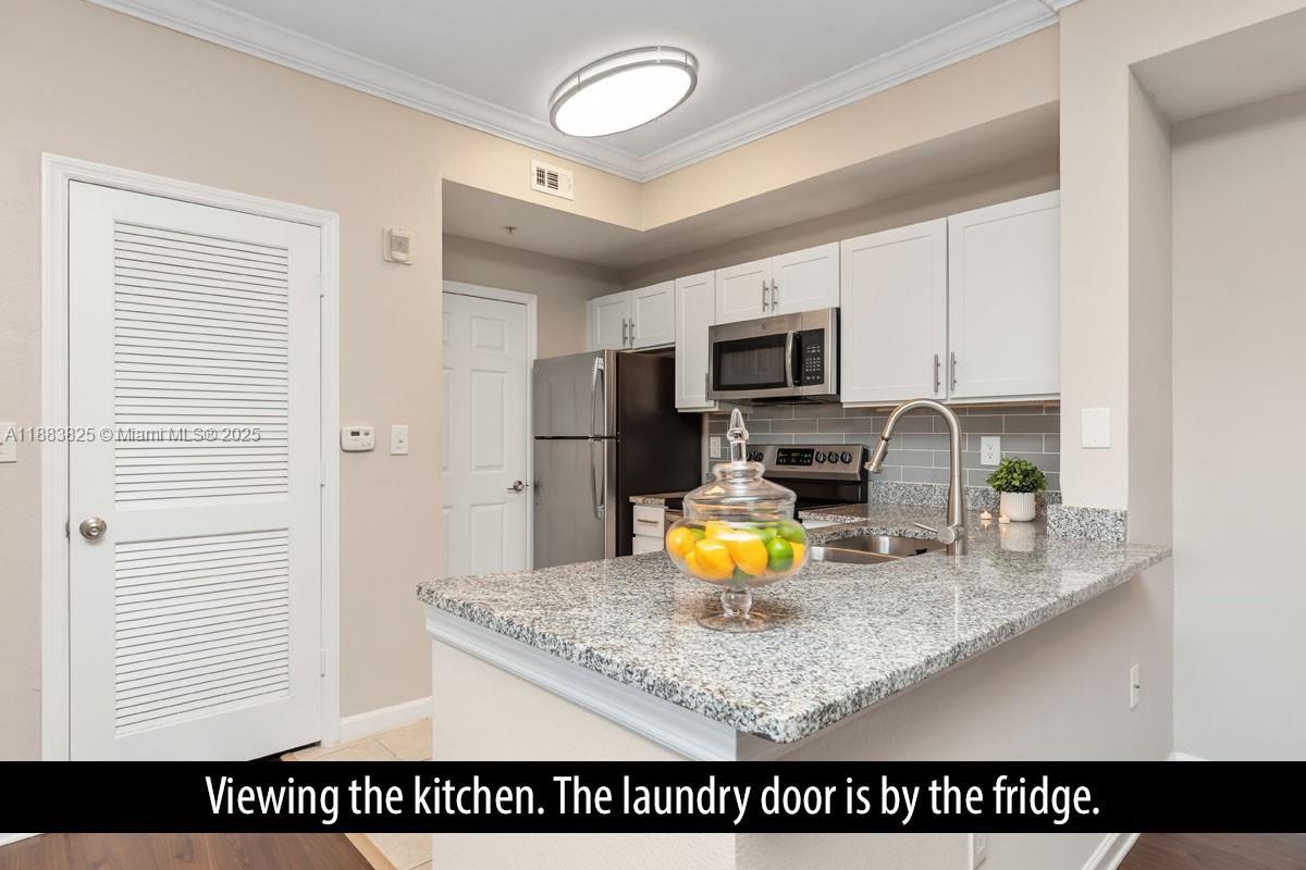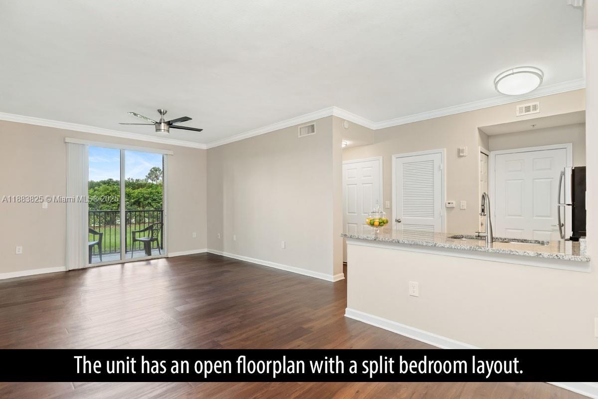 Beautiful updated 2 bedroom 2 bath condo. Convenient first floor. Updated kitchen with granite counters and stainless steel appliances, open floorplan, full size washer and dryer inside the unit. Vinyl flooring throughout. Crown moulding in the living area. Enjoy living in this highly desirable, all ages, gated community of Murano of Delray with amenities such as a clubhouse, fitness center, racquetball, tennis courts, resort style pool, and walk/jog path around the lake. Close to major highways, shopping and a short 15 min drive to trendy downtown Atlantic Avenue and the beach. No pets.