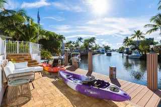 Breathtaking sunsets and the best long canal views await in this furnished 3BR/2BA single-story home. Just three houses from the Intracoastal, enjoy deep water access with no fixed bridges, a seawall, and a 35’ concrete dock with water and electric. Nearly a ¼-acre lot with heated pool, deck, covered outdoor bar, and screened Florida room. Interiors feature a renovated kitchen, updated baths, spacious living areas, and marble patios. Master suite with ensuite shower; second king bedroom shares a hall bath with a kids’ room with twin trundle beds. Additional features: washer/dryer, storage room, attached garage with automatic door, new asphalt driveway, and 2016 concrete S-tile roof. Equal Housing Opportunity.