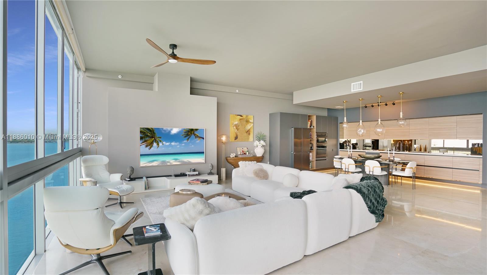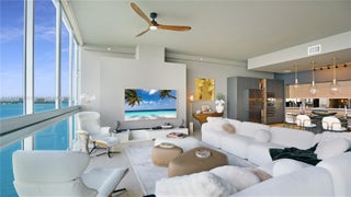 1815sf RENOVATED 2/2 WATERFRONT DREAM LOFT! BAY VIEWS, WATCH DOLPHINS FROM YOUR TUB, BEAUTIFUL SUNSETS, & MIAMI SKYLINE. 11' CEILINGS. OPEN DESIGNER KITCHEN, FLOOR TO CEILING & WALL TO WALL WINDOWS w/motorized shades, marble floors. 2 PARKING SPACES, Electric car charging stations; guest parking. Spacious Master Bath. BOUTIQUE bldg in EXCELLENT FINANCIAL and STRUCTURAL standing, ROOFTOP HEATED POOL & HOT TUB, GYM. Pets OK. NORTH BAY VILLAGE will be home to 6 new high-end, world-renowned residential developments. Nearly $2 billion in new developments including Pagani, Tula at 7918 West Drive, Continuum and Shoma Bay on Normandy Dr.