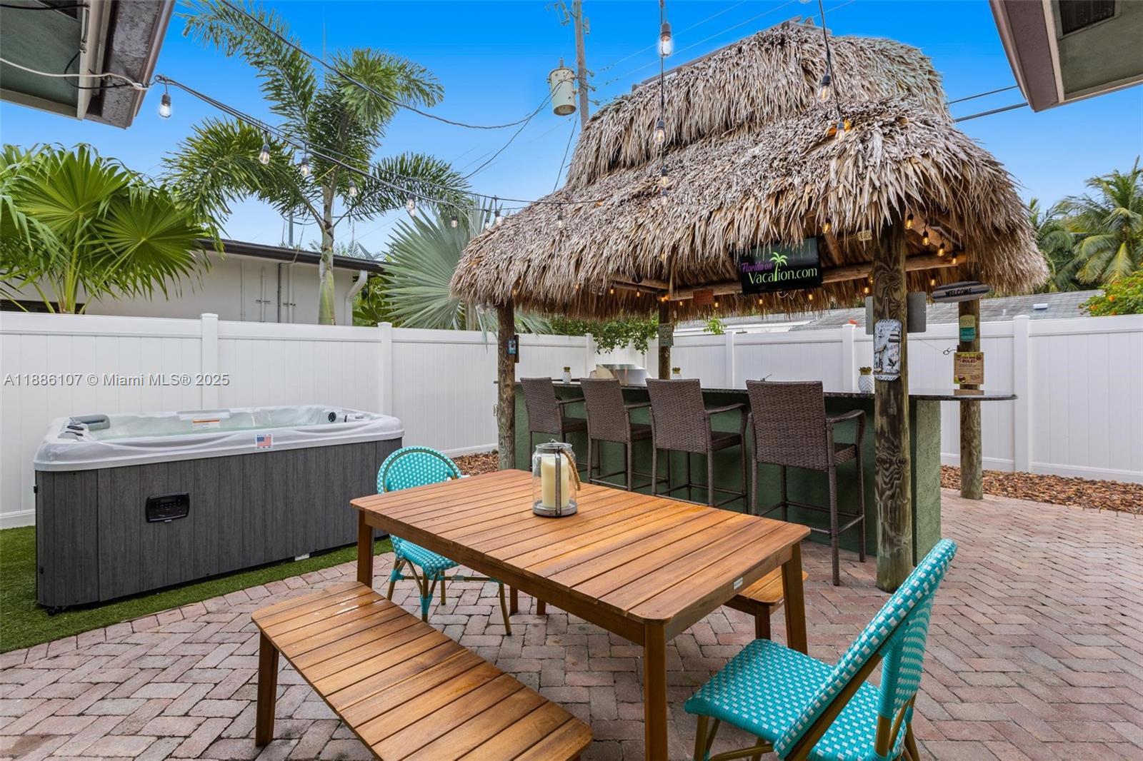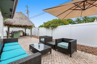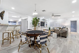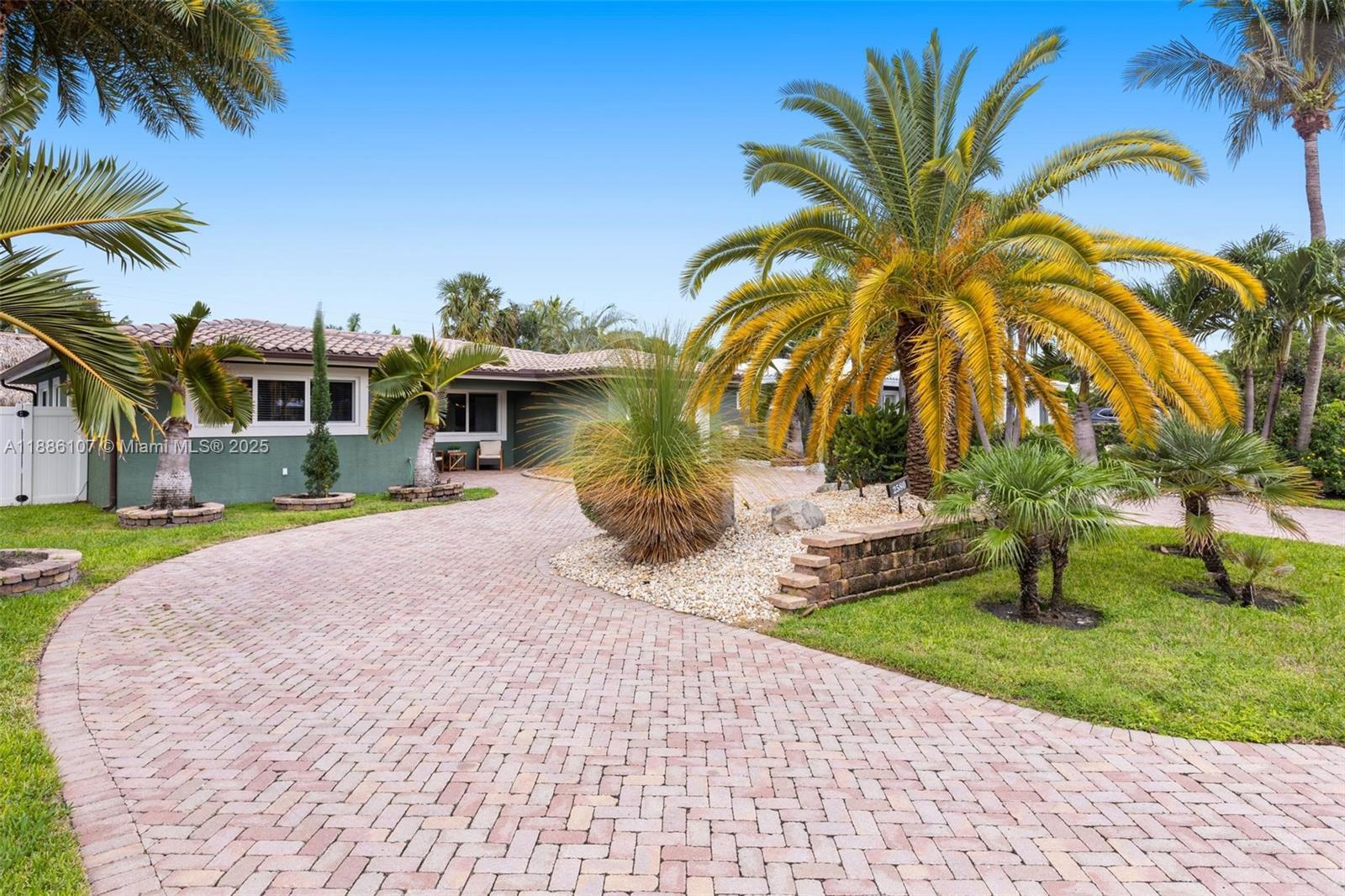 Prime location in Pompano Beach Estates—just a short walk to the beach! This charming 3BR/2.5BA home is loaded with upgrades, including a large office off the master suite, custom closets and shelving, like-new laminate wood flooring, solid wood interior doors, stainless steel appliances, and a 3” granite countertop. Features include a custom entertainment center, laundry center off the kitchen, garage, and newer whole-house PVC plumbing. Impact windows and doors provide peace of mind. Outdoor living shines with tropical landscaping, paver circular driveway, fenced yard with like-new artificial turf, a Tiki Hut with granite bar, plumbing, electric, refrigerator, stove, and Alfresco grill, plus a high-end vista landscape lighting system. Barrel tile roof approx. 16 years old.