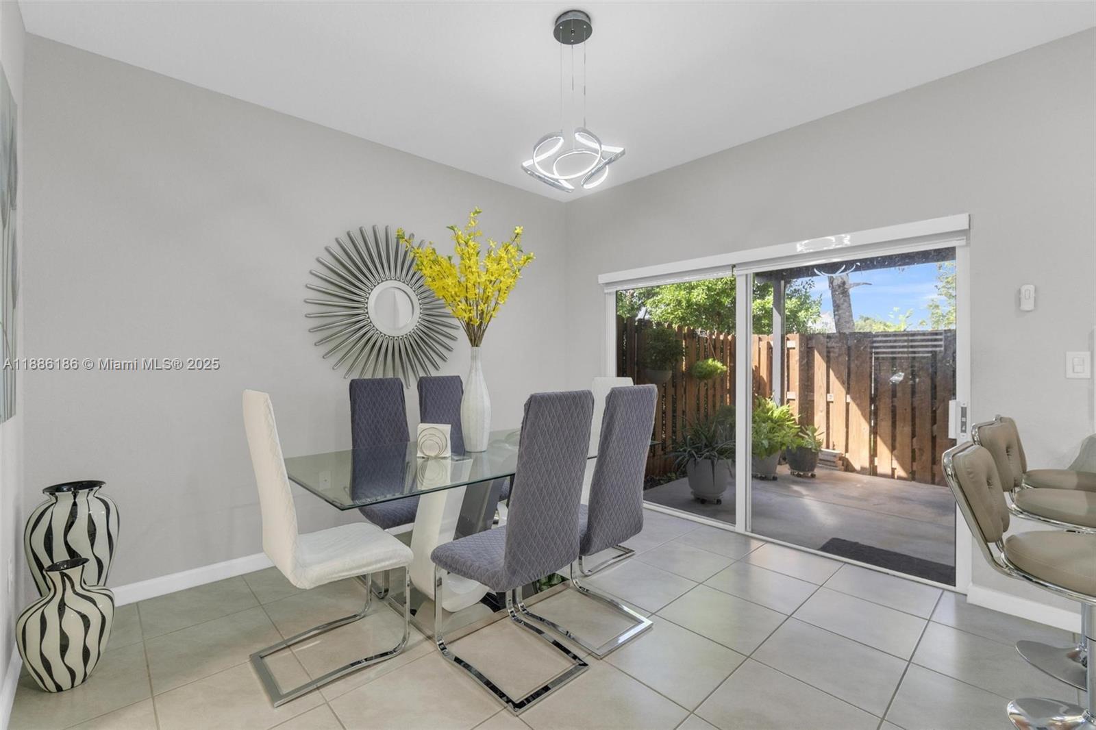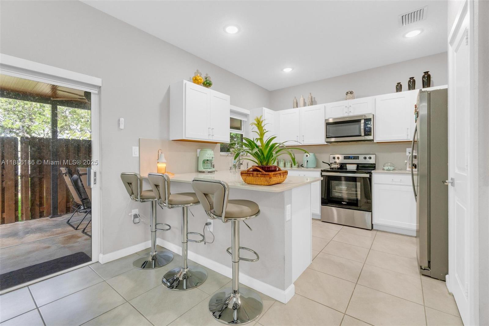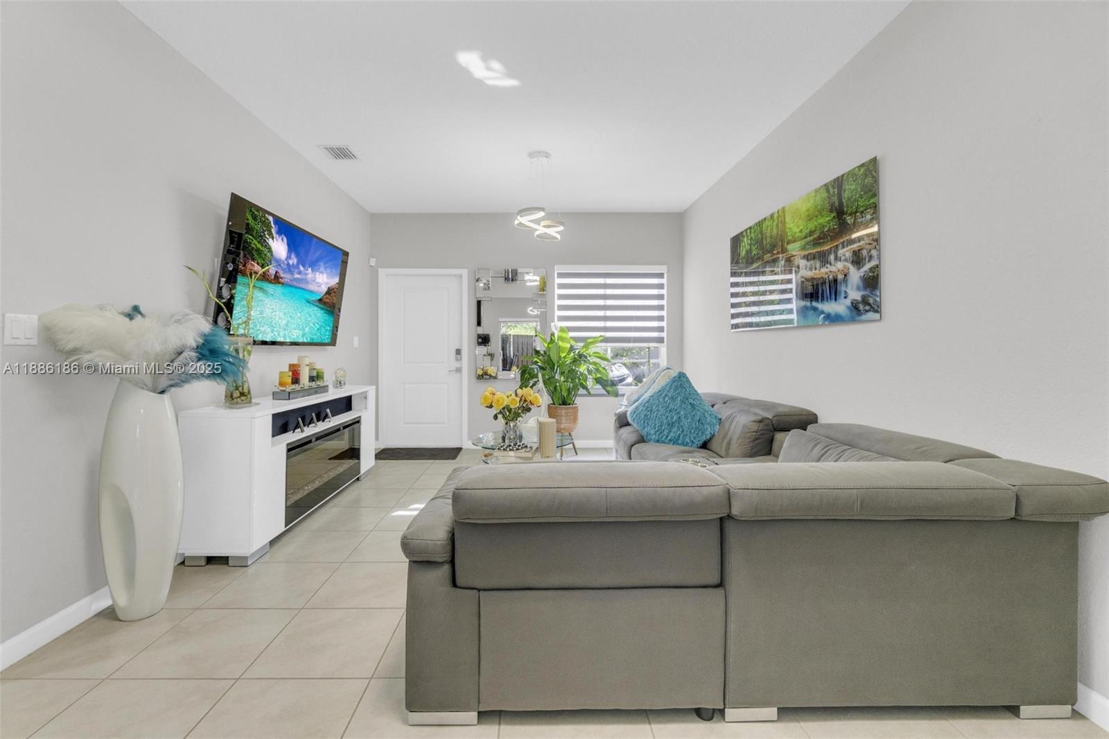 SECTION 8 IS WELCOMED! Discover your ideal home in this stunning, spacious one-story villa featuring 3 bedrooms and 2 bathrooms. Step into your private retreat with a vast fenced backyard, an outdoor oasis complete with a TV—perfect for unforgettable gatherings and entertaining guests. The generous kitchen boasts elegant quartz countertops, and the entire home is beautifully tiled for a modern touch. Enjoy the convenience of an in-home laundry room equipped with a washer and dryer. With 2 assigned parking spaces and ample guest parking, you'll never have to worry about finding a spot. This incredible community offers a refreshing pool and a clubhouse that can be reserved for special occasions, such as birthday parties and events, along with a gym, security, and onsite management.