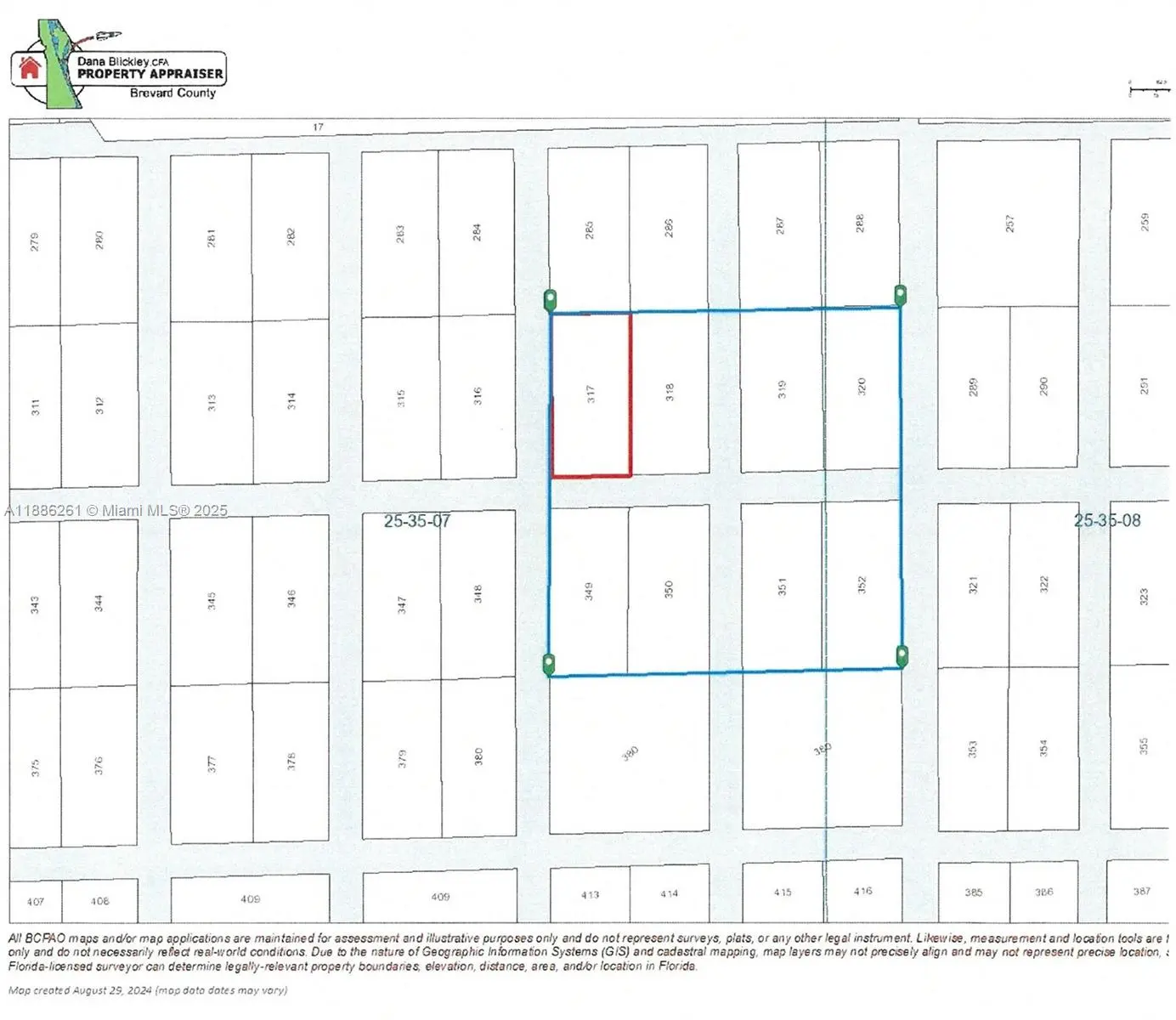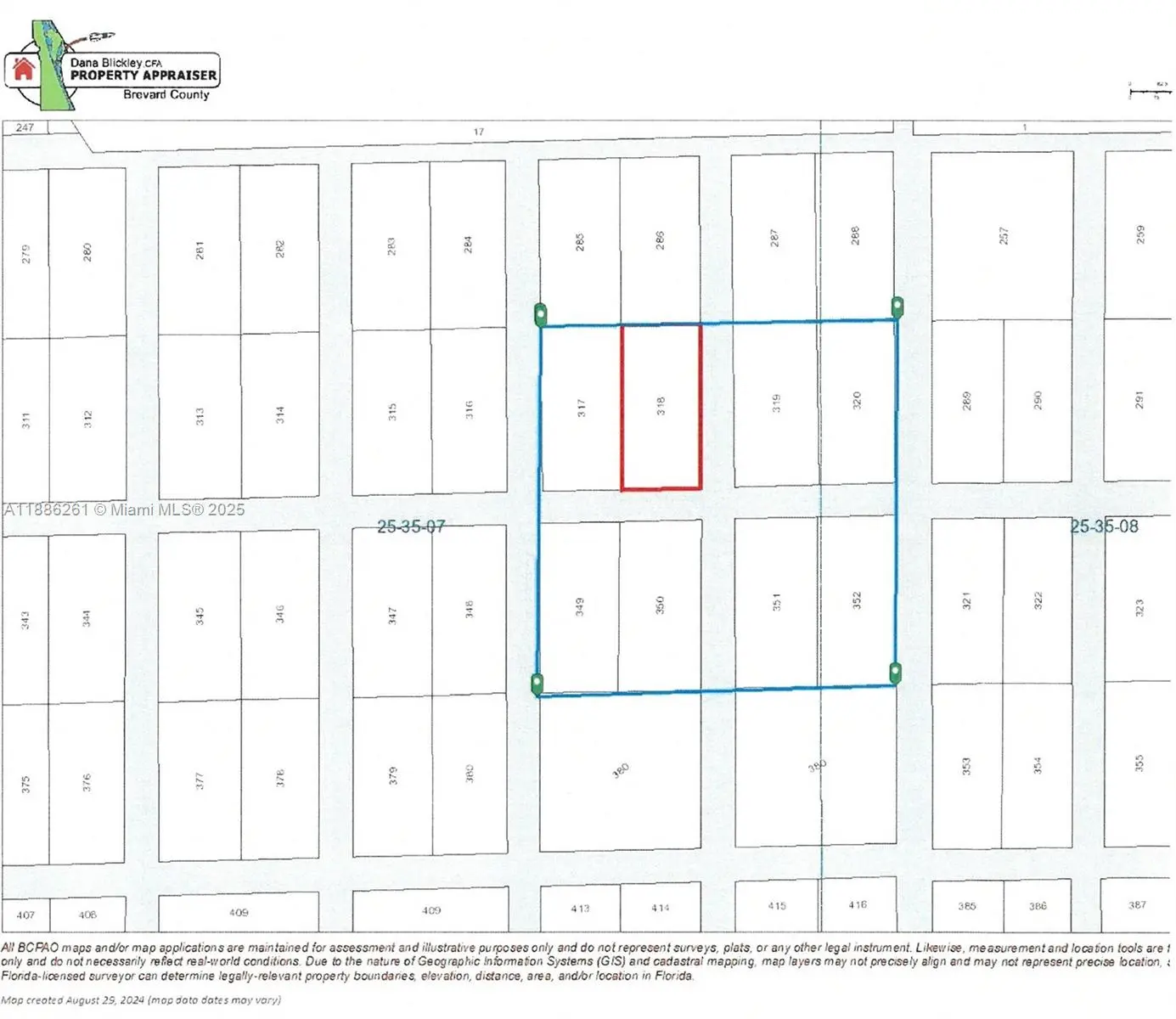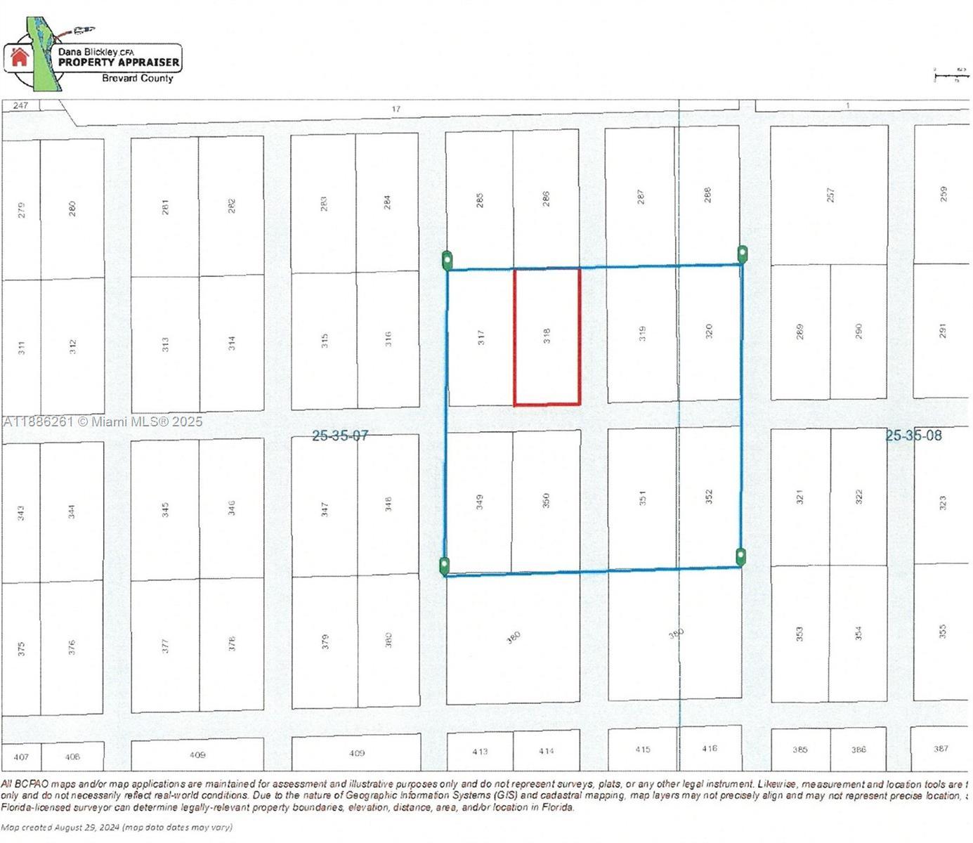 This land is zoned GU with a property use of 0010 - VACANT RESIDENTIAL LAND (SINGLE FAMILY, PLATTED). There is no road access to the land. There are 8 parcels being sold all together. Brevard County Account #'s: 2500349, 2500350, 2500351, 2500352, 2500365, 2500366, 2500367, 2500368
