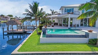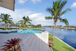 2018 waterfront custom-built luxury estate in SW Cape Coral, ideally positioned at a private cul-de-sac with 192 ft Gulf-access waterfrontage and stunning canal views. This modern home boasts 4 Beds + an office, 4.5 Baths, modern finishes, and Savant smart home tech. It features impact windows, abundant natural light, and serene water views. The gourmet kitchen includes Wolf and Sub-Zero appliances, quartz countertops, a bar, and a butler's pantry. The first-floor oversized primary suite offers a boutique closet and a spa-like bathroom. Upstairs, find a loft, a second primary bedroom, and two additional en-suite bedrooms with private balconies. Outdoors, enjoy the infinity-heated pool, 2024 tiki hut, summer kitchen, and fenced patio. A rare Gulf-access gem! Schedule a showing today!