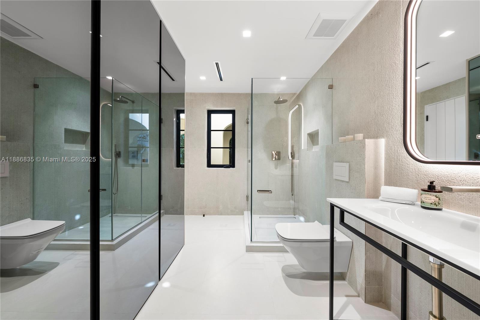 Where contemporary design meets timeless Mediterranean Revival, this stunning waterfront estate defines refined Miami Beach living. Privately set behind lush landscaping on prestigious Pine Tree Dr., it resides in one of the city’s most coveted enclaves, celebrated for its historic charm & unbeatable location. Arched architecture & restored period details nod to The Surf Club’s iconic style, while interiors embrace coastal blues, soft neutrals, & modern tropical accents. This 5BD/4.5BA "smart home" has 75’ of water frontage, boasting a grand gated lanai entrance, gourmet gas kitchen with 2 sinks, spa-inspired primary suite with steam shower & soaking tub, & wine cellar. Enjoy a pool, spa, & dock accommodates 3 boats, featuring a 20,000-lb lift with direct bay access & no fixed bridges.