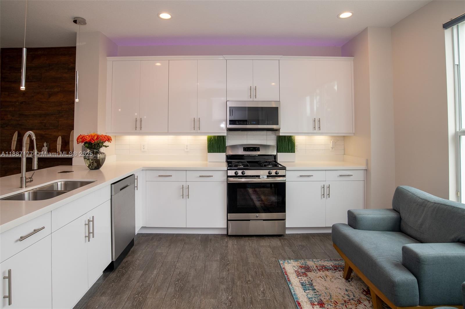 Outstanding waterfront 3-bedroom 4 bath townhome + 2 car garage in the gated 2017 built Pointe at Middle River. Enjoy an expansive great room, large eat-in kitchen, gleaming white cabinets & backsplash, quartz counters & stainless-steel appliances plus a 1st floor family room & large primary bedroom suite. Stunning south river views & superb natural light all day; glittering lights at night + indoor/outdoor living with 3 waterfront balconies. Custom ceramic flooring & décor on the main level, plush carpet for the family room & bedrooms. Comfortable secure living with impact windows, doors and garage door, brand new epoxy garage floor, electric car charger, & natural gas grill. Your 40-unit complex amenities: heated pool & spa, fully equipped gym, clubhouse, & phone app controlled entry.