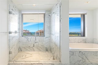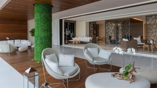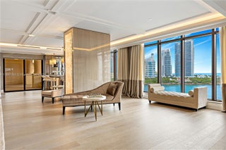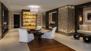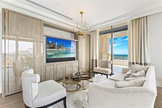 EXPERIENCE THE EPITOME OF LUXURIOUS INTERIOR ARCHITECTURE & DESIGN AT PALAZZO DEL SOL FROM THIS SPRAWLING RESIDENCE BY AWARD-WINNING DÔME INTERIORS OF GENEVA! Unmatched Classic Swiss Elegance from this 5 Bed + 6.5 Bath Residence Spanning 7,630 SF of Living Area. Private Elevator Entry Greets you to an Open Living Area in Gold & Beige Tones with Mother-of-Pearl panels & custom-designed European Furnishings. Panoramic Views Overlooking the Ocean, Bay & Golf Course from 2,471 SF Wraparound Terraces. Custom Entertainment Bar with Lounge Area, Study & Theatre. Coffered Ceilings with Hidden Linear Diffusers. White Oak Flooring. Dining Area with Hand-Painted Panorama Wallpaper & Handmade Chandelier. European Boffi Eat-In Kitchen wrapped in slabs of Onyx & features Sub-Zero + Gagganeau Appliances. Wine Cellar. Primary Bedroom features Hand Painted Wallpaper, Glass Pendants & Sconces by Ochre. Massive Custom Swiss Dressing Room with Backlit Glass Displays. Primary Bath wrapped in Book-Matched White Carrara Marble, Double Vanity Sink, Custom Fisher Island Boffi Soaking Tub & Rain shower. Secondary Bedrooms in Ocean-Inspired Tones. Sultry Powder Room with Leather Walls & Black Galaxy Granite Countertop. 2 Parking Spaces + 1 Golf Cart Space. Building Amenities & Services include Butler-Serviced Aperitivo Bar & Lounge, Theater, Hair & Makeup Salon, Private Massage Rooms, Business Center, Gym & Cardio Room, Kidville Playroom, Concierge, Valet, Zero-Edge Pool & Spa with Attendant.