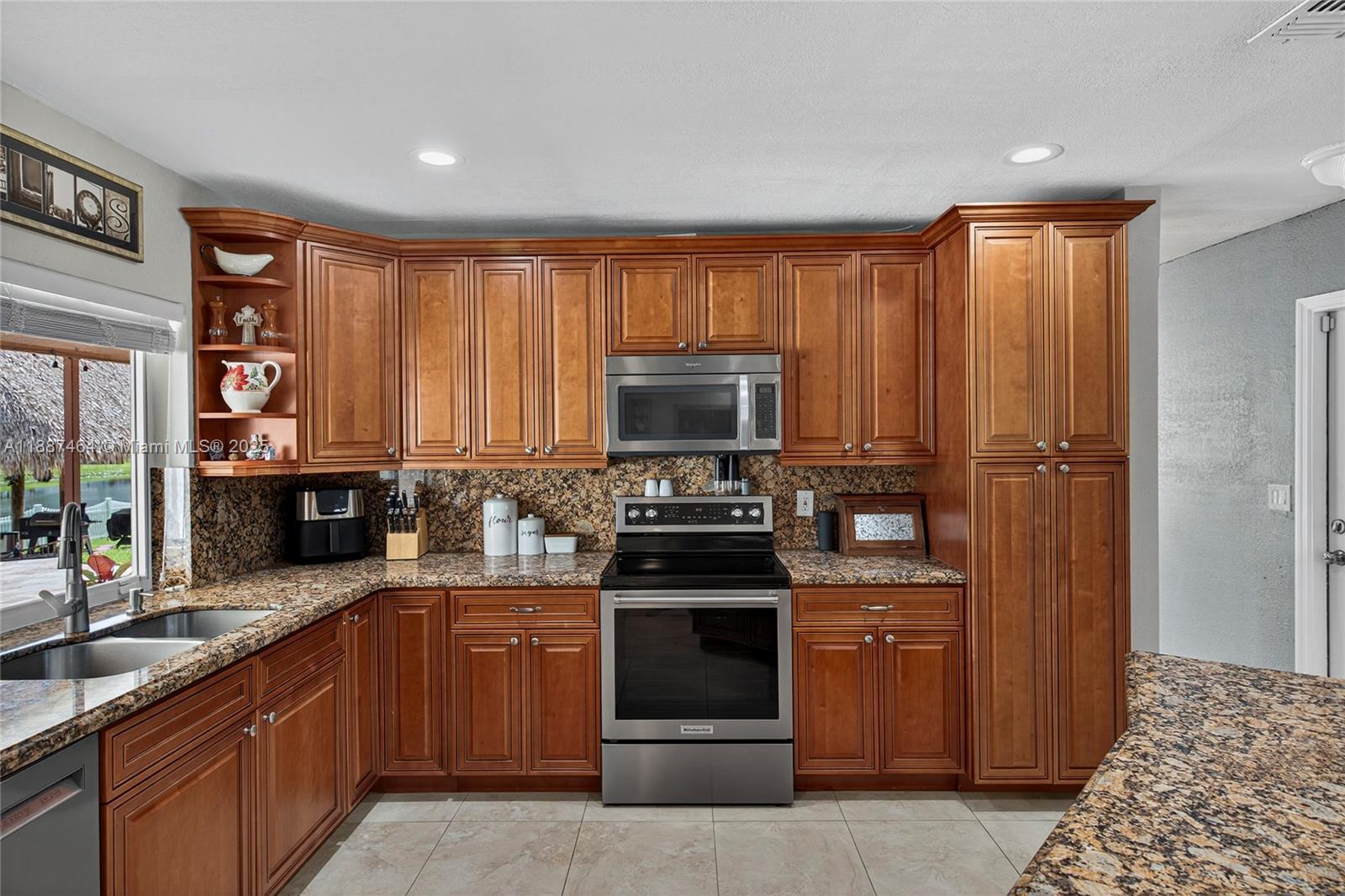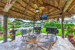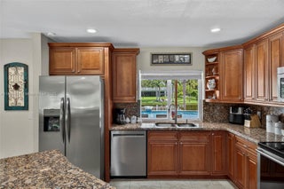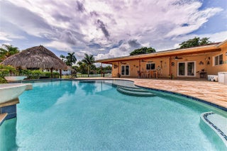 LUXURY OASIS ON A SPRAWLING BUILDERS ACRE-LAKEFRONT LOT IN DAVIE WEST! STUNNING TURNKEY 3 BEDROOM - 2 BATH + FLEX ROOM W/ROOM TO BUILD ON. RANCH STYLE HOME W/ OVERSIZED PAVED DRIVEWAY. DESIGNED FOR ULTIMATE COMFORT & UNFORGETTABLE ENTERTAINING. BACKYARD SHOWCASES TRAVERTINE AROUND SALT WATER POOL W/ SWIM UP BARSTOOLS. TIKI BAR, LARGE COVERED PATIO, FENCED YARD W/ SPACIOUS DECK ON THE LAKE, PERFECT FOR FISHING! KITCHEN HAS EXPANSIVE STORAGE, WOOD CABINETS, PASS THRU WINDOW, GRANITE COUNTERTOPS W/ LARGE ISLAND & EAT IN COUNTER, NEW FLAT ROOF W/WARRANTY, APPLIANCES & WATER HEATER. RENOVATED BATHROOMS & BEDROOM FLOORS. PRIMARY SUITE W/ WALK IN CLOSET. HURRICANE IMPACT WINDOWS & DOORS. NEW SPRINKLER SYSTEM RUNS OFF LAKE. EXCELLENT SCHOOLS. NO RESTRICTIONS-COMMUNITY IS ANIMAL, BOAT & RV FRIENDLY