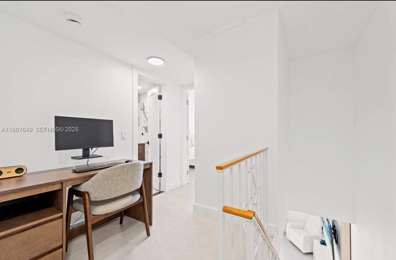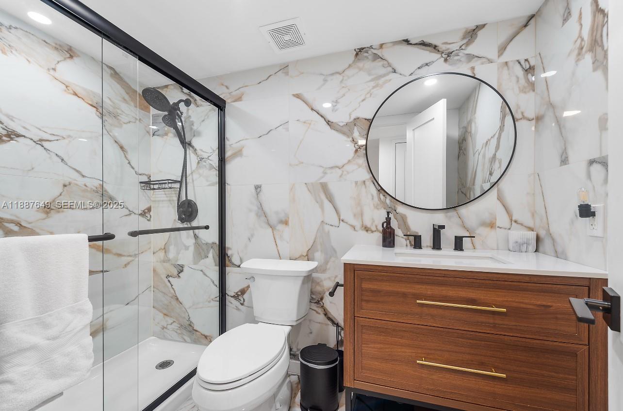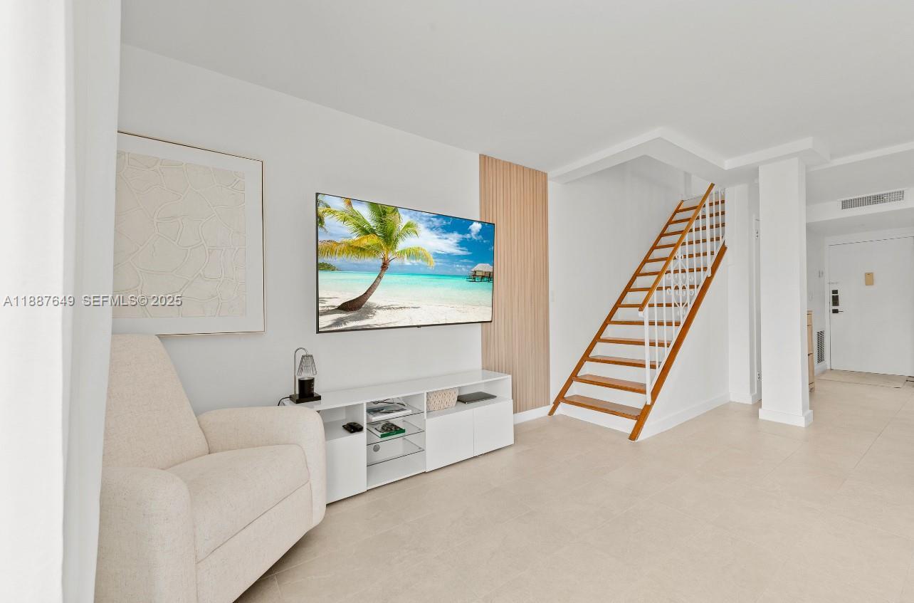 Elegant 2-Story Penthouse Condo just 1 Block from the Beach! Fully renovated with city-approved permits, this 2BR/1.5BA, two story condo residence blends modern design with elegant finishes. This open-concept living features brand-new electrical & PVC plumbing, quartz countertops, KraftMaid cabinetry, reverse osmosis water system, updated baths, new appliances, and new ceramic floors. Fresh paint, no popcorn ceilings, hard-wired smoke detectors & optimized vents. Balcony showcases partial ocean & skyline views plus the Acqualina Resort. Ample in-unit & building storage, assigned covered parking, in a well-maintained building, steps to dining, cafes, markets, top-rated schools, with the Aventura Mall & Bal Harbour Shops just minutes away - steps to the sand! Lease right away! Schedule your Private Showing Today!