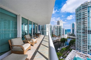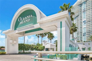 Impressive views and great floor plan in this beautifully updated turnkey 3 bedroom 3 bath condo, located on private, secure Oceania Island. New impact glass windows and sliding doors. Lobby and common area recently remodeled. Enjoy Oceania's private, full service beach club which offers ocean front gym, health spa, ocean front dining, indoor basketball half court, tennis and so much more. Must see to appreciate all the extras featuring a stunning open island Italian kitchen with fabulous finishes. Huge wrap around balcony fantastic for entertaining and relaxing. Marina and pool and/or beach cabanas currently available to unit owners for even more enjoyment.