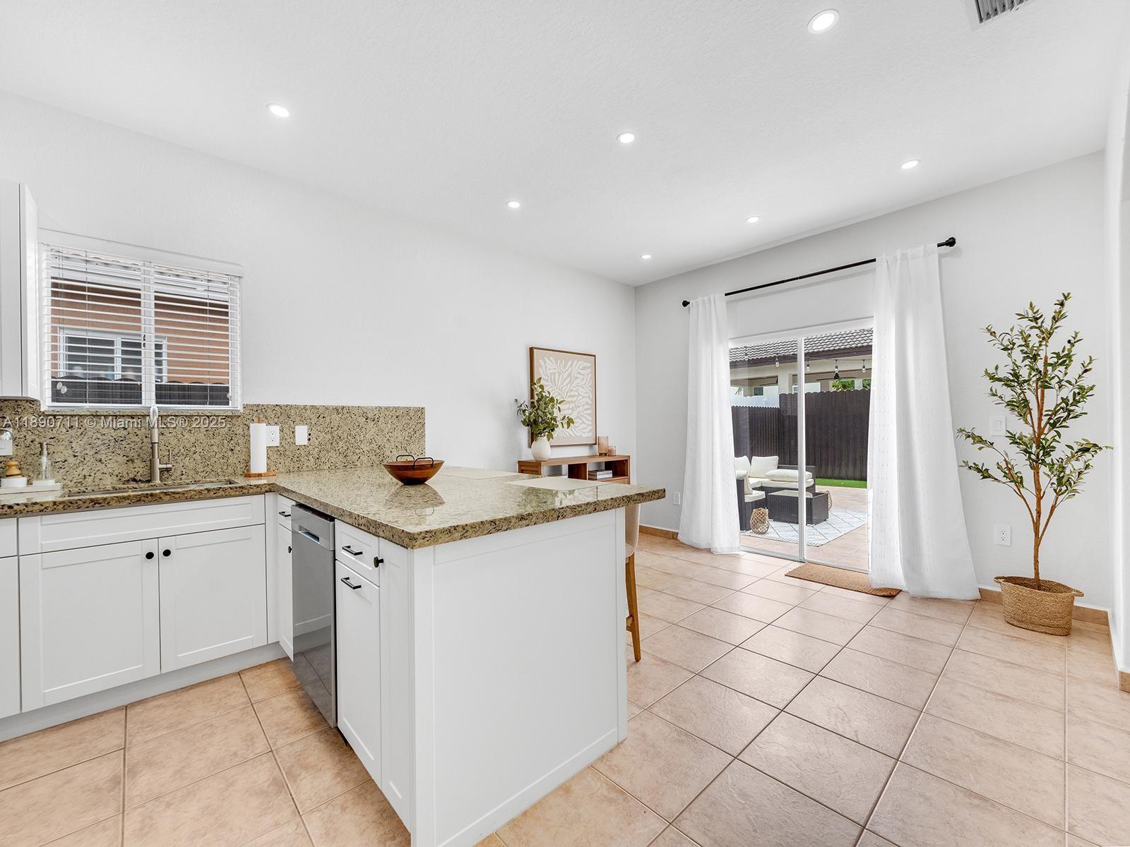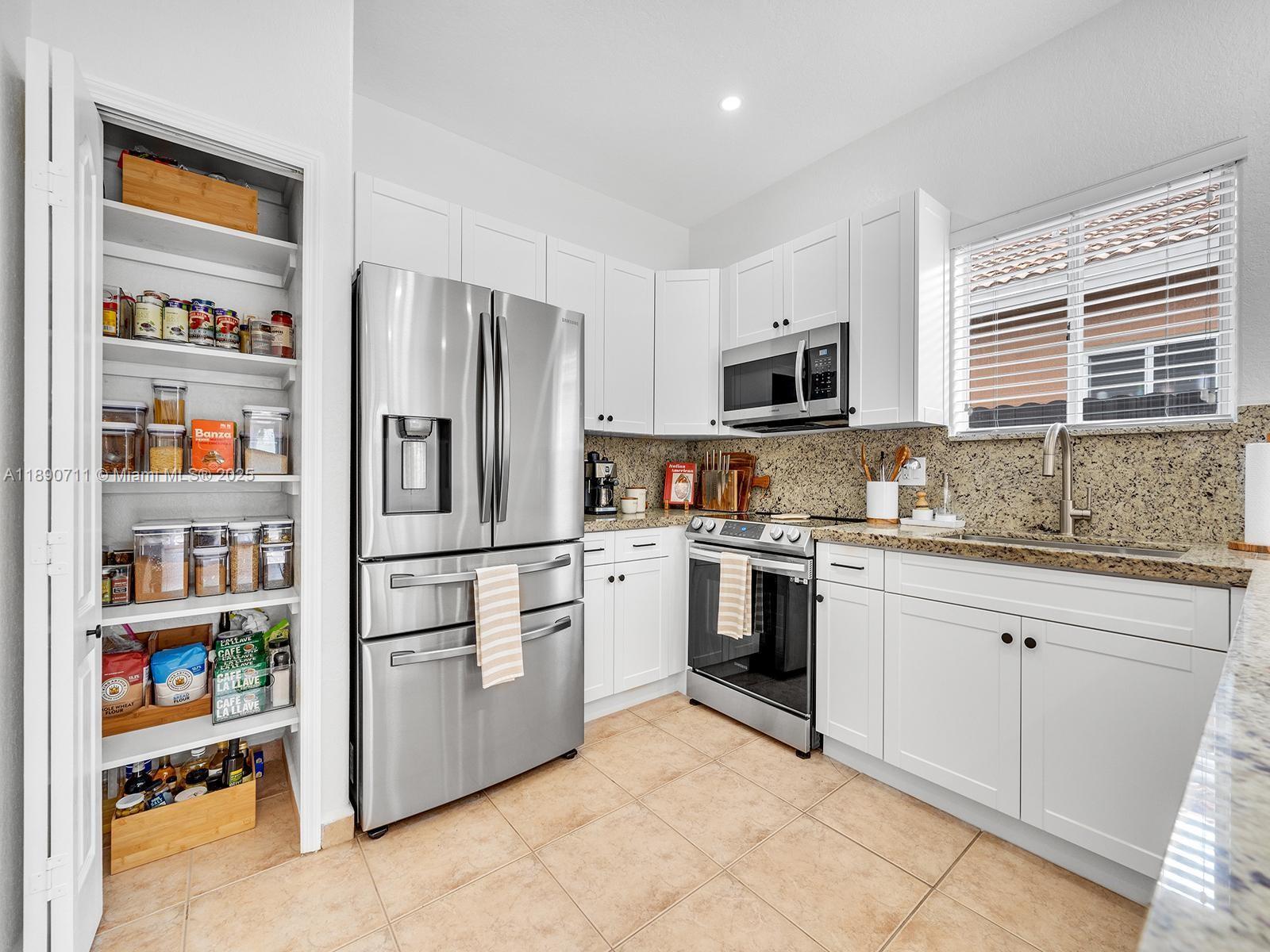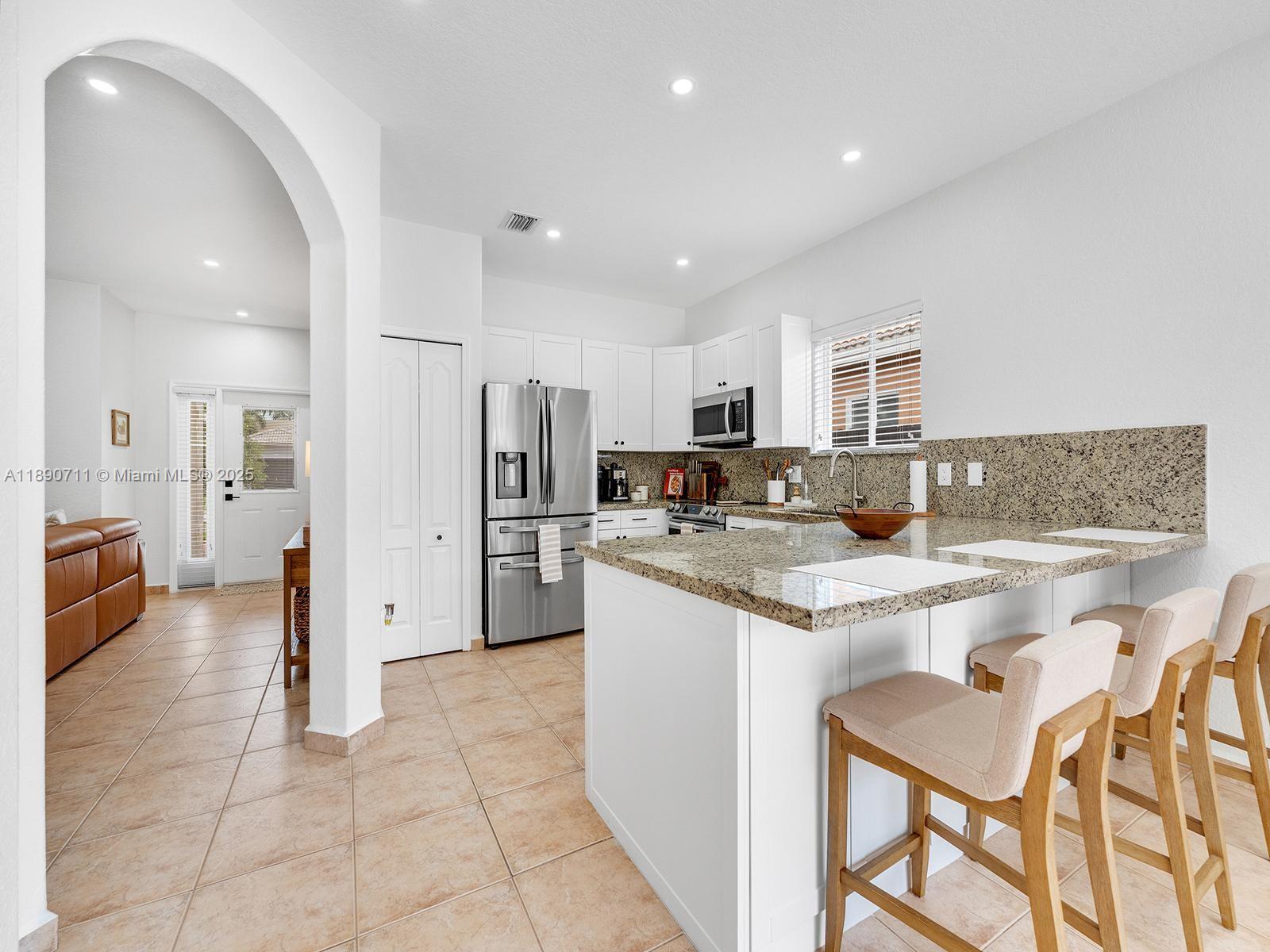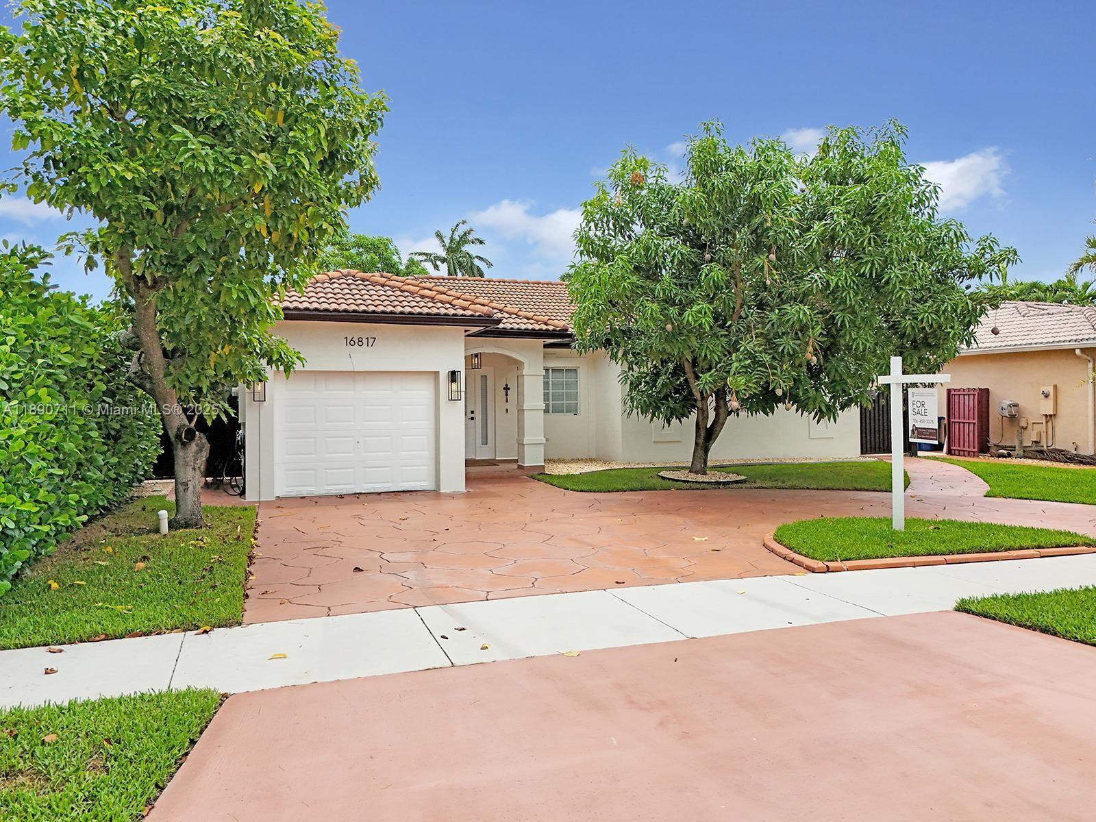 Beautiful single-family home in immaculate condition, located in the highly desirable Town of Miami Lakes. This property features 3 bedrooms and 2 bathrooms, including a spacious master suite with a custom walk-in closet. The renovated kitchen boasts a built-in pantry, new stainless-steel appliances, and granite countertops with an ample seating area — perfect for entertaining. Enjoy a spacious backyard with a countertop/bar ideal for gatherings. The home offers tile flooring, built-in closets throughout. The garage includes washer and dryer hookups and offers enough space for storage or a potential at-home gym. The large circular driveway provides plenty of parking, and no HOA fees. Excellent location near Royal Oaks Park, minutes from major highways, shopping, and restaurant.
