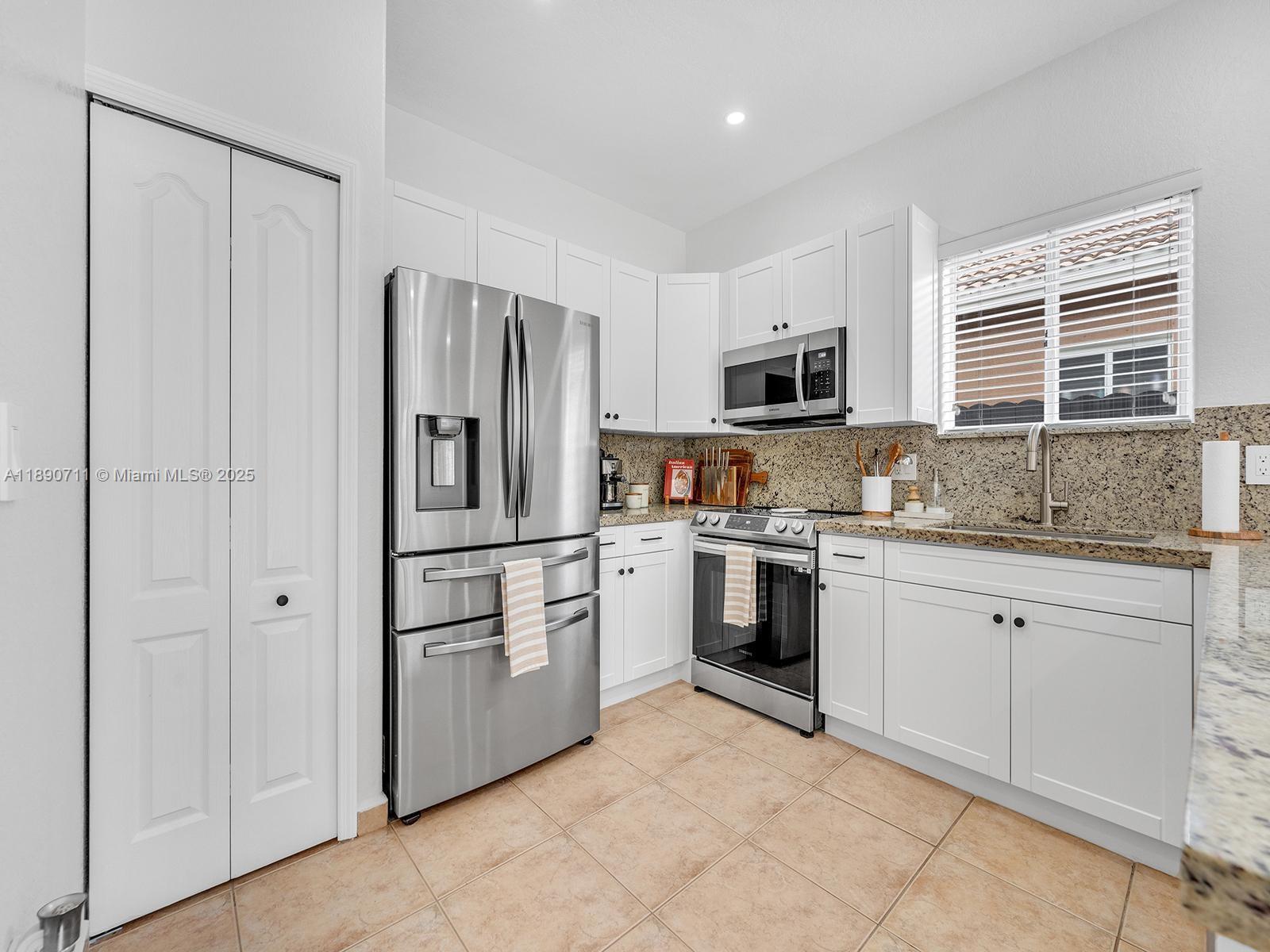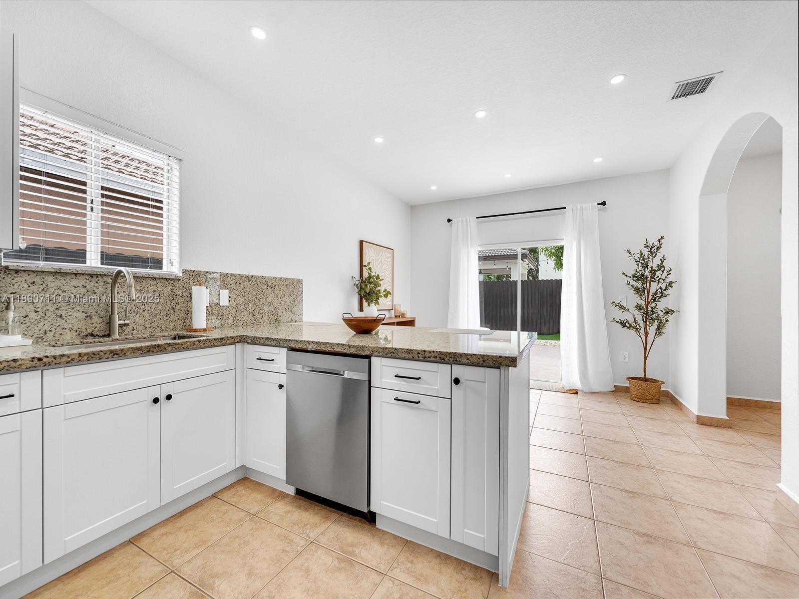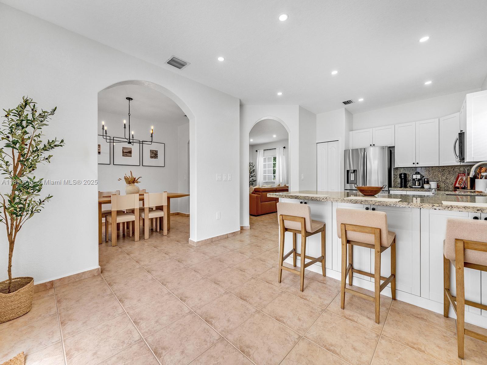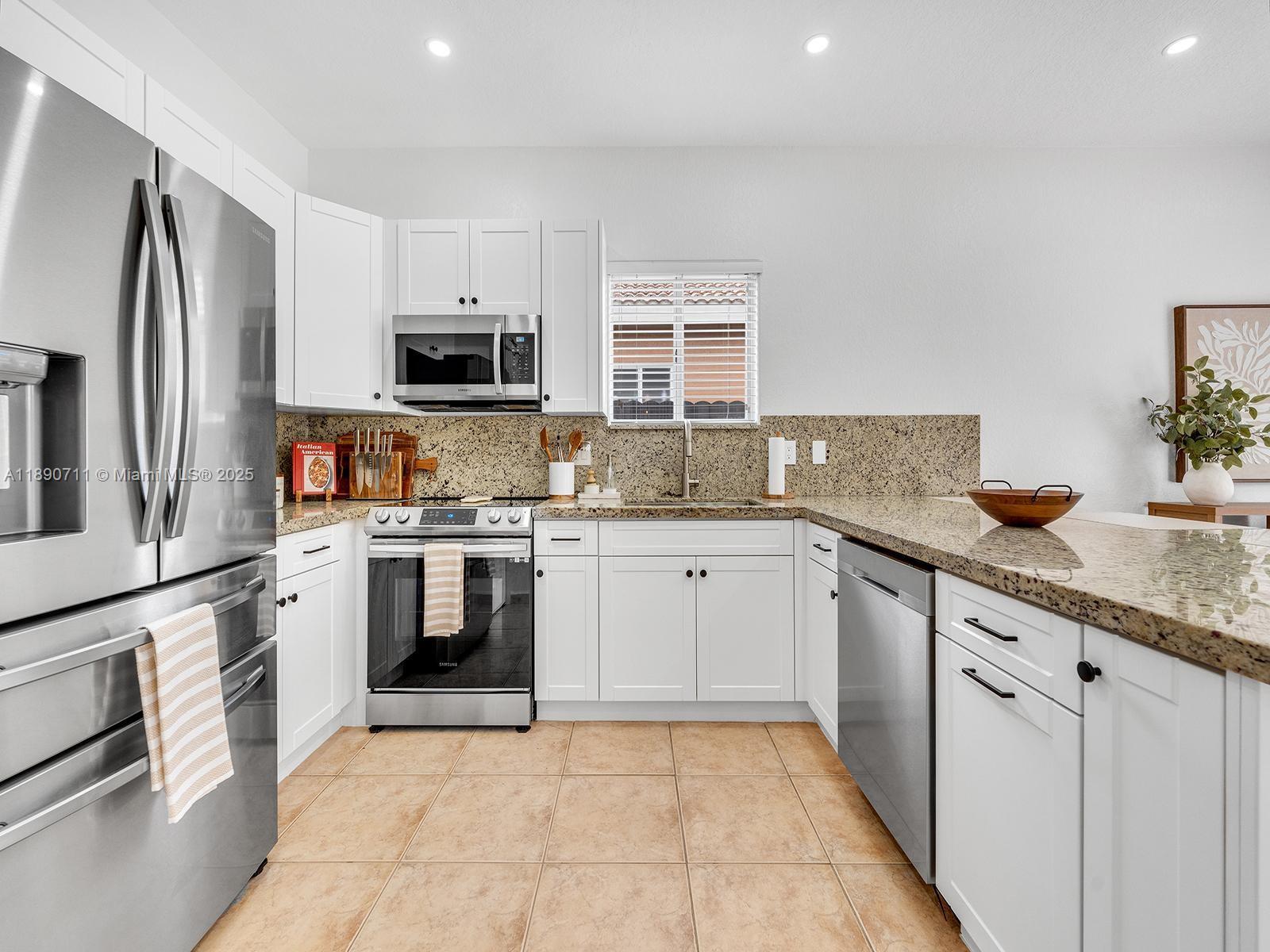 Beautiful single-family home in immaculate condition, located in the highly desirable Town of Miami Lakes. This property features 3 bedrooms and 2 bathrooms, including a spacious master suite with a custom walk-in closet. The renovated kitchen boasts a built-in pantry, new stainless-steel appliances, and granite countertops with an ample seating area — perfect for entertaining. Enjoy a spacious backyard with a countertop/bar ideal for gatherings. The home offers tile flooring, built-in closets throughout. The garage includes washer and dryer hookups and offers enough space for storage or a potential at-home gym. The large circular driveway provides plenty of parking, and no HOA fees. Excellent location near Royal Oaks Park, minutes from major highways, shopping, and restaurant.