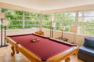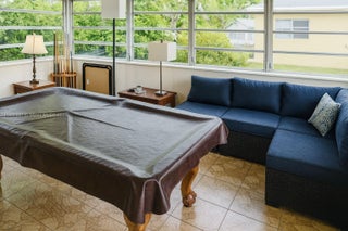Come home to this cozy, fully furnished duplex. Water, power, and cable are all included—no extra costs! Chill in the sunny living room with comfy brown leather couches, a glass coffee table, and pretty tree paintings. Have fun in the game room with a cool pool table for friends and family. Wash clothes easily in your own laundry room. Outside, enjoy the green patio with a hanging swing chair, palm trees, and a table for relaxing in the yard. Ready to move in now. See it soon!