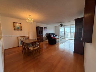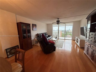 Spacious 1 bedroom, 1.5 bath residence featuring wood flooring in the living area and tile flooring throughout. Enjoy a private balcony with wide city and sunset views. The building offers 24/7 front desk security, two pools, two tennis courts, fitness centers, a billiards room, and bicycle storage. Centrally located. Many shops, dining options, and amenities within the City of Aventura. The A/C unit is approximately one year old.