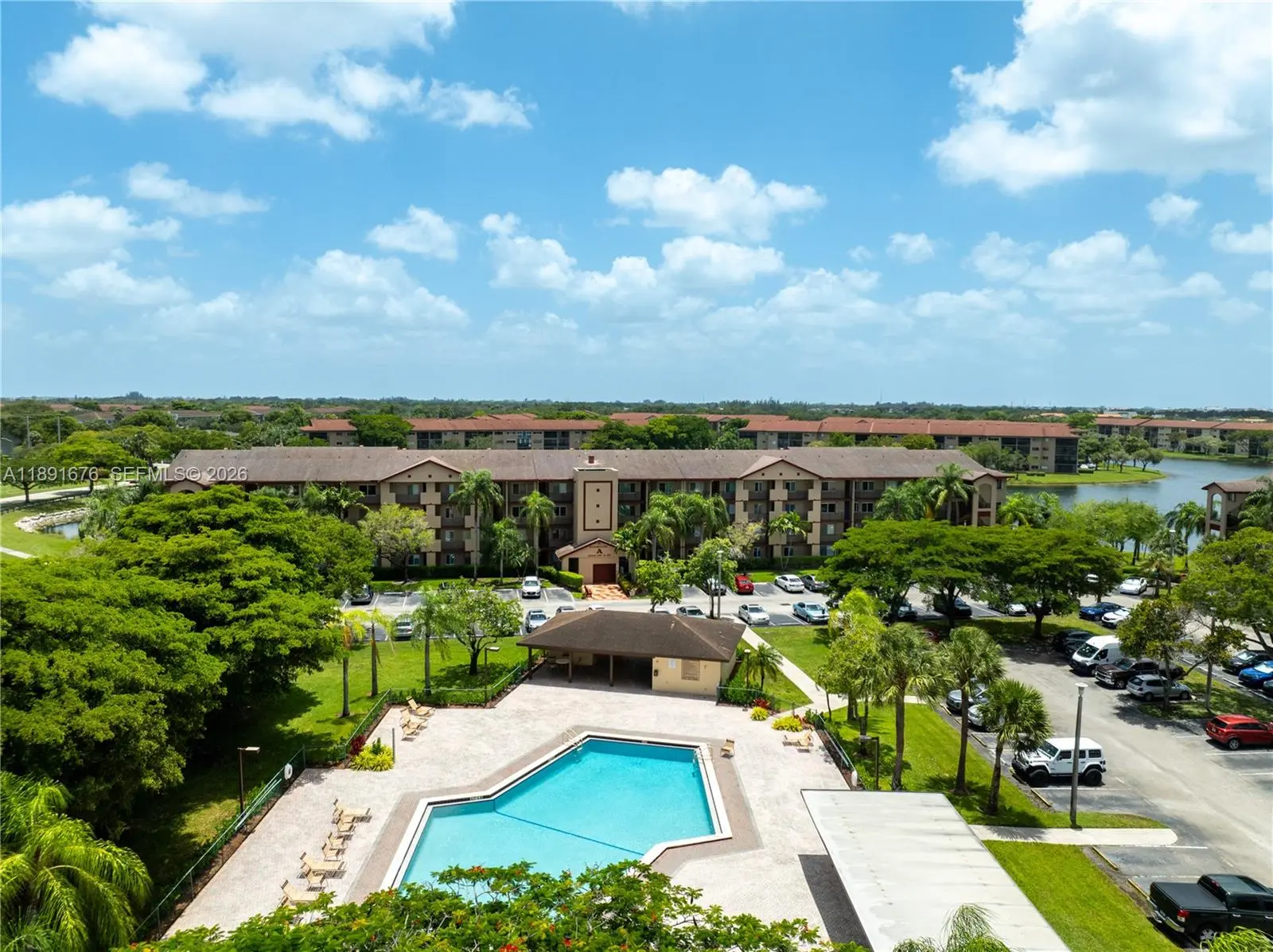 55+ COMMUNITY – Nestled perfectly between a tranquil lake and the nearby satellite pool, this 2-bedroom, 2-bathroom Primrose model offers a breathtaking southern exposure view. The unit features a cozy breakfast nook and a galley-style kitchen, along with brand new flooring throughout. Convenience abounds with a washer and dryer inside the unit and a large walk-in closet in the master bedroom. New hurricane impact windows and enclosed patio. Rent includes: cable, internet, water, and full access to all community amenities — including free transportation, live theater shows, movie screenings, card rooms, heated pools, tennis courts, pickleball courts, and fitness center. Ideally located within walking distance to the main entrance, pickleball courts, and Club Health gym, this building was recently repainted inside and out.