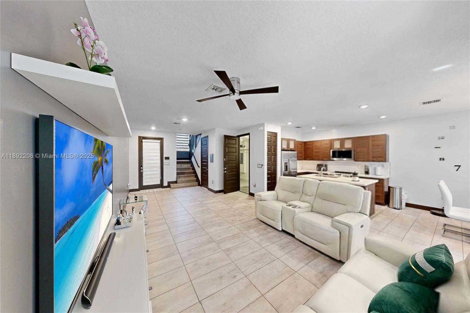 Modern 3-Bedroom 2,5 Bath Townhome in Miami Lakes. Located inside the exclusive community of Satori, this beautiful home is just about 8 years old and feels like new construction! Features include impact windows, tile floors, a modern kitchen with stainless steel appliances, kitchen island, custom doors, modern blinds, and ceiling fans. Enjoy stylish bathrooms, a tankless water heater, washer and dryer, and a 1-car garage. Satori offers resort style amenities and a stunning clubhouse — all within the desirable town of Miami Lakes, with easy access to major highways, dining, and shopping. Schedule your private showing today! *HOA requires a min Credit Score of 680 for approval.