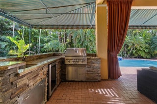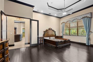 Experience peace and sophistication in the exclusive gated community of Saddlebrook in Davie. This stunning residence features 6 bedrooms and 5 bathrooms. The spacious master suite includes custom walk-in closets and a versatile sitting area perfect for a home office or gym. Elegant marble and hardwood flooring complement the custom window treatments throughout. The open-concept kitchen boasts stainless steel appliances and connects seamlessly to the formal dining and living areas Enjoy the outdoor patio with a built-in BBQ area, pool, and jacuzzi—perfect for relaxing in your own retreat. Located on a quiet cul-de-sac, this property offers both safety and serenity. Conveniently close to Vista View Park and top-rated public and private schools.Complete hurricane protection included