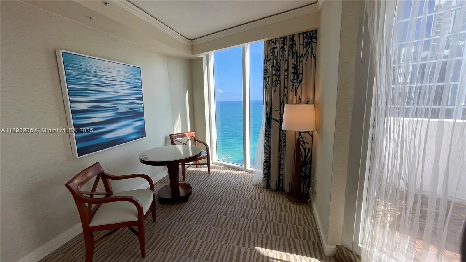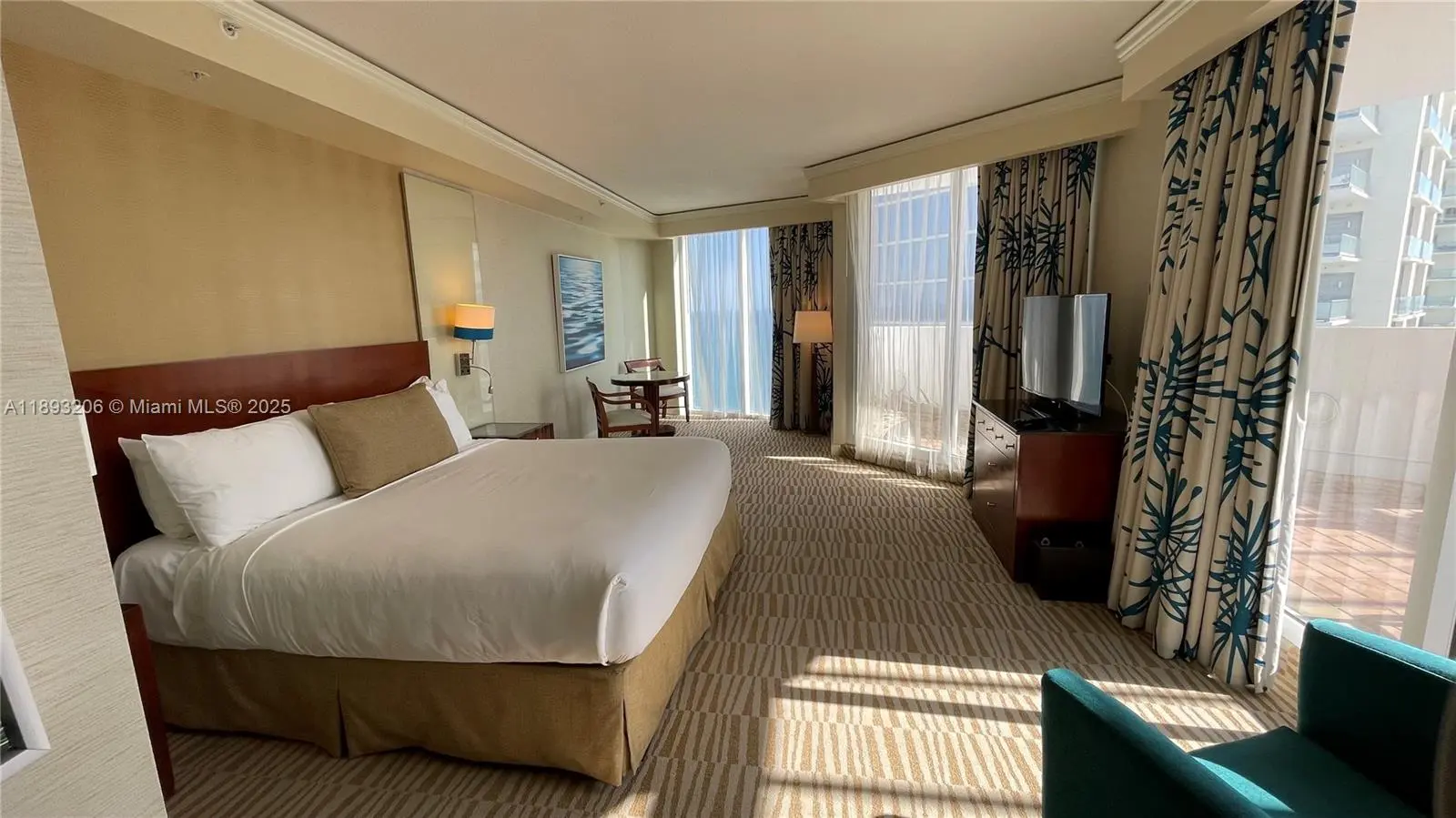 Trump International Beach resort condo hotel One of a king Studio on 28th floor with panoramic 180 degree view with 300 sq.ft terrace with Jaccuzzi, south east corner with ocean through intracoastal views, with 2 full size beds on 28th floor. Rent with the hotel program and personally use your unit 4-12 weeks a year at you convenience. Or new owners can choose to manage unit themselves and not joining Hotel Programs. Daily rentals OK as private unit owners. See video of the unit in the video tour attached. Rental programs explaining both options and expenses and revenue for 2025 attached. All utilities and insurances are included in the maintenance fees. Please call or text listing agent for showings not less than 24hours in advance. Oceanfront Trump Hotel resort with best amenities in Sunny Isles Beach, oceanfront pool and full service beach, 3 restaurant and bars in the building, beach restaurant and bars. Full resort amenities with spa and fitness center, business center and meeting rooms. Best vacations in Sunny Isles Beach.
