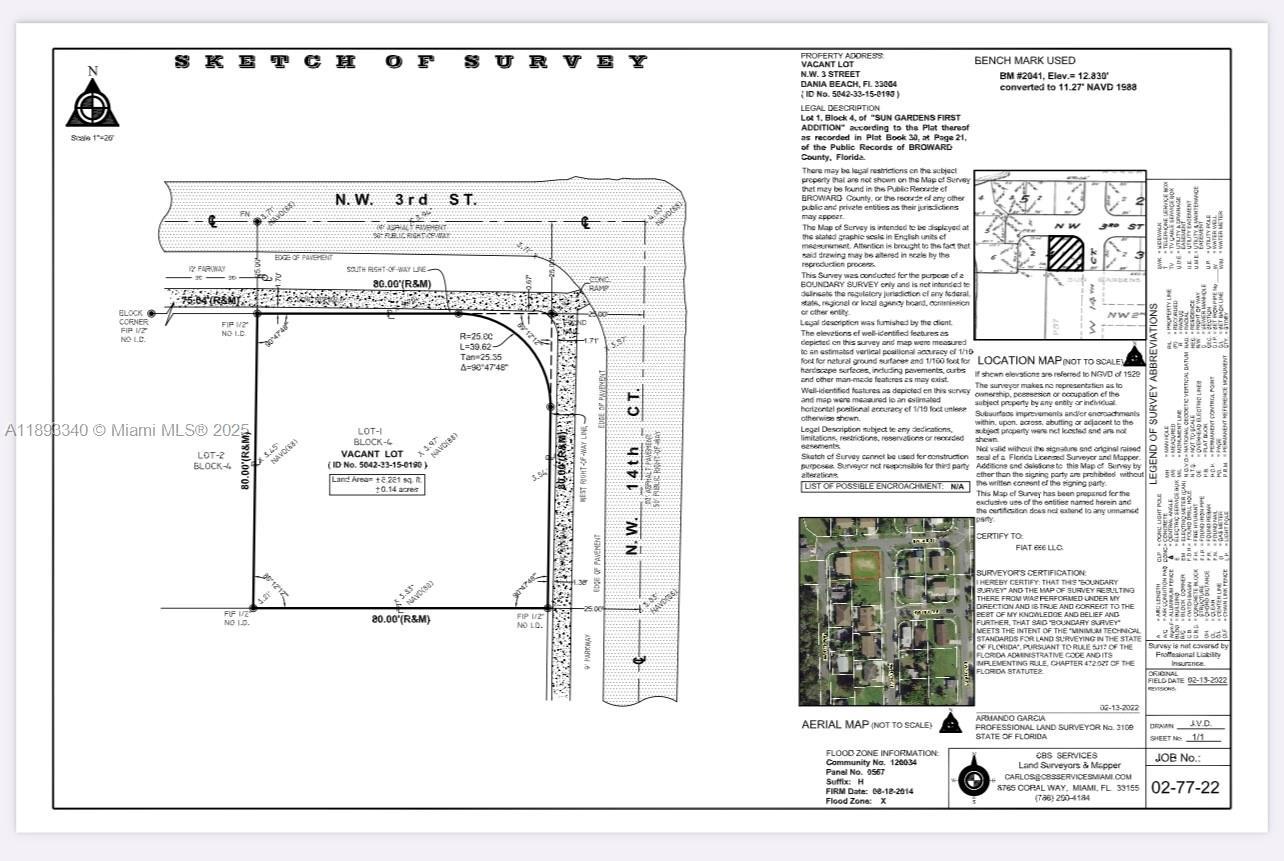 CORNER Vacant Land on the best location of Dania Beach. 6262 Square Feet Ready to Build Your Dream House. Walking Distance to all the New Neighboring Developments which include the 102-acre premier mixed-use Dania Pointe with 1 million square feet retail stores and restaurants. Close to I-95, the Ft Lauderdale Airport and the Everglades Cruise Port. Do not miss this opportunity. Driving Directions: To access, put on the GPS this address: 280 NW 14th Way, Dania Beach FL 33004. The vacant lot is just behind this property. Clear Vacant Lot. Area in full expansion! See all pictures.Public utilities appear to be in the area; buyer to verify availability, setbacks, flood zone, and impact fees with the City of Dania Beach.