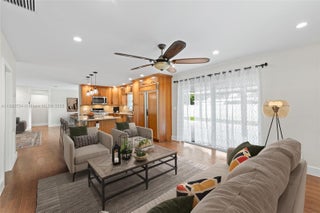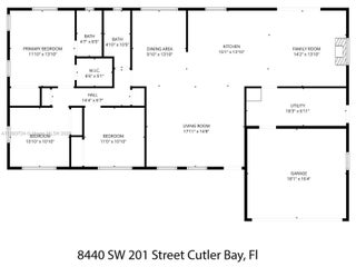 This impeccable one-story single-family home in Saga Bay offers over 1600 sf of living with 3 bedrooms & 2 full bathrooms, featuring smart home upgrades, a two-car garage, large terrace and a laundry room is available now. The open kitchen with a gas stove and elegant wood cabinetry flows into the family room overlooking a spacious covered terrace. The primary suite includes two closets—one walk-in—and all bedrooms have built-in organizers. Ideal for entertaining, the large terrace features a freestanding bar and plenty of space for outdoor dining and relaxation. Additional highlights include impact windows and doors, beautiful front landscaping, and landscape maintenance included in the rent. Located in a very quiet Saga Bay/Cutler Bay neighborhood close to parks, schools, and shopping.